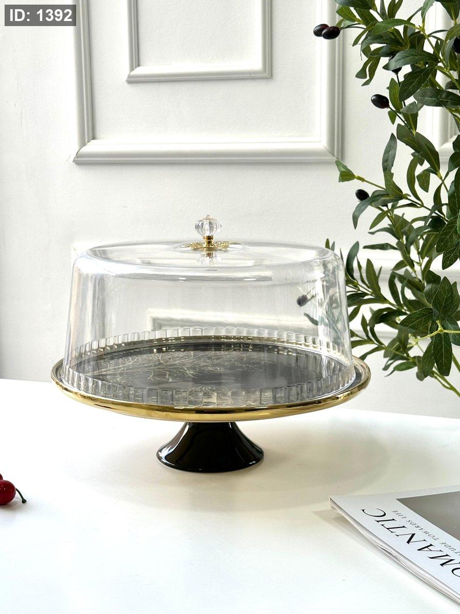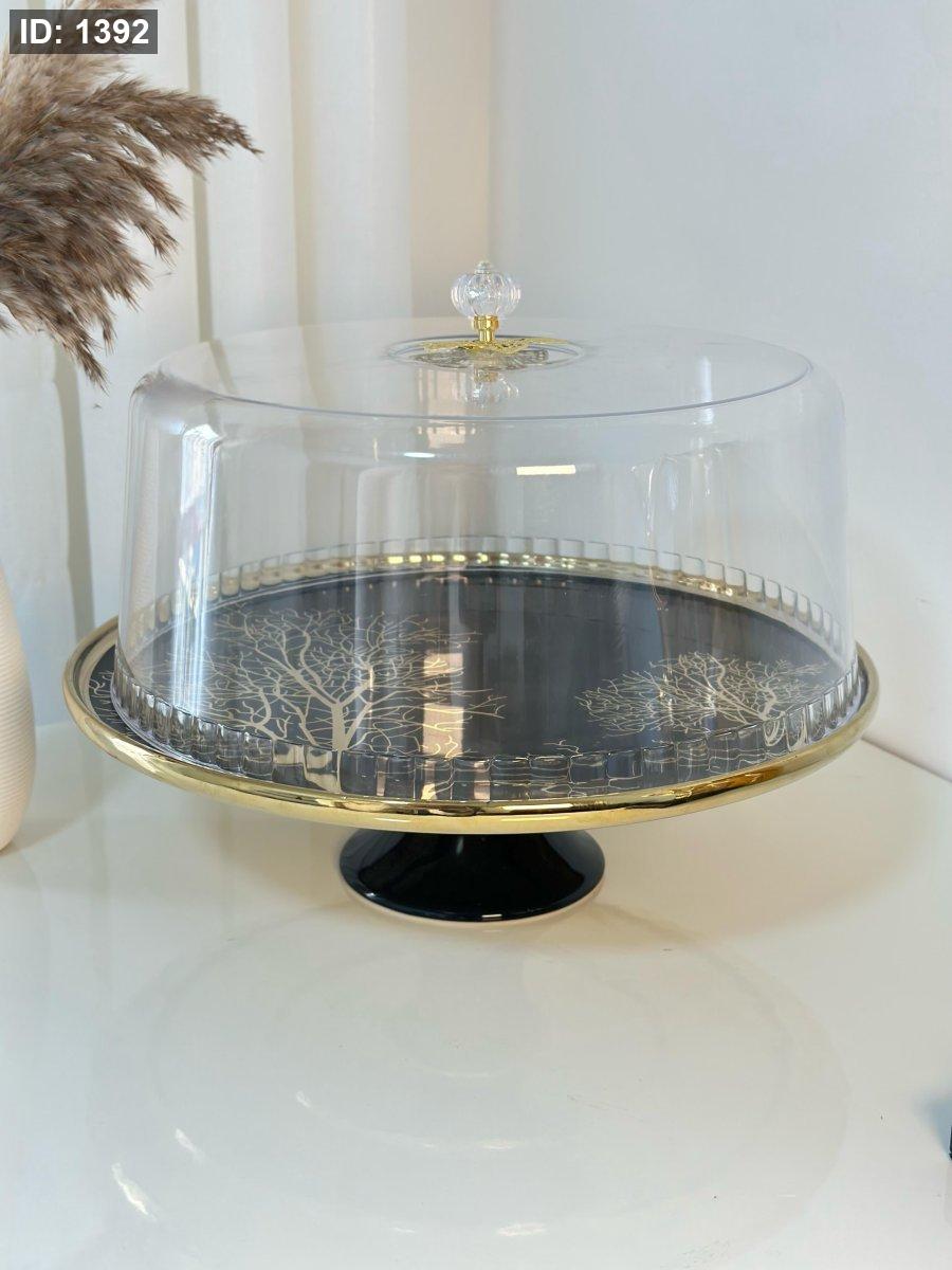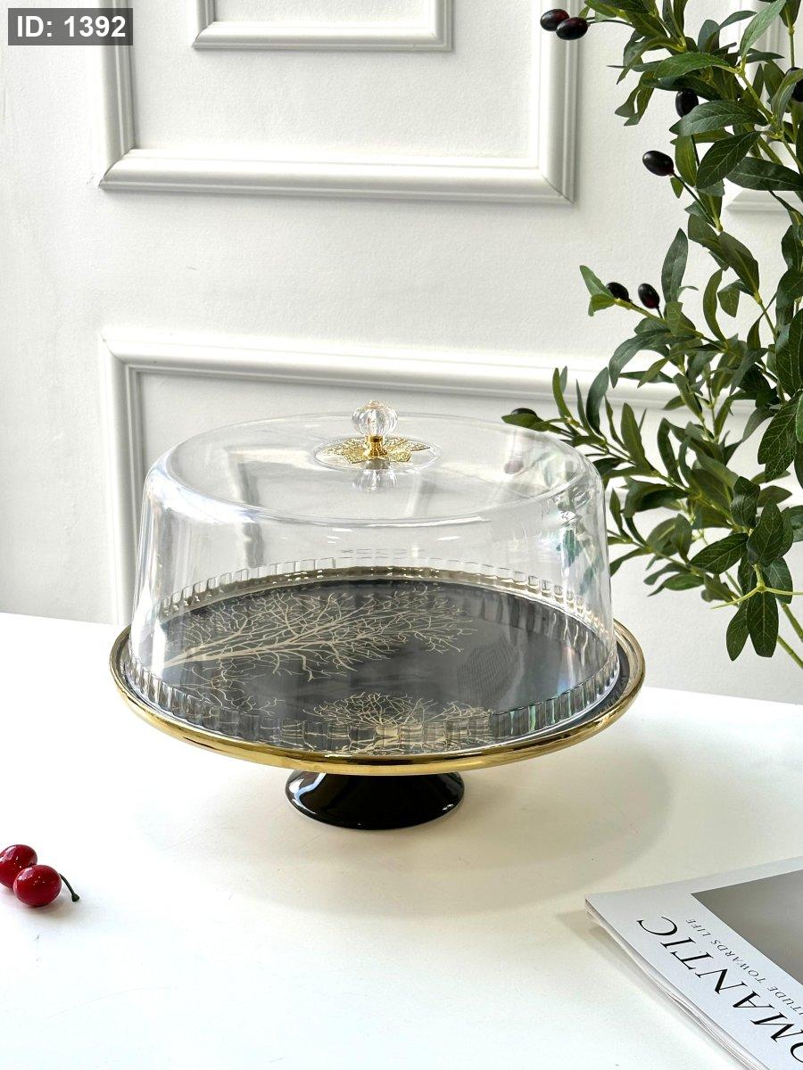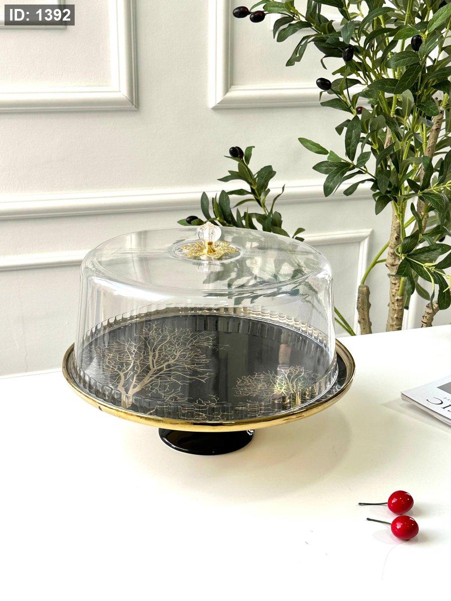 جاط كعك برجل مع غطاء مدور مشجر حز ذهبي