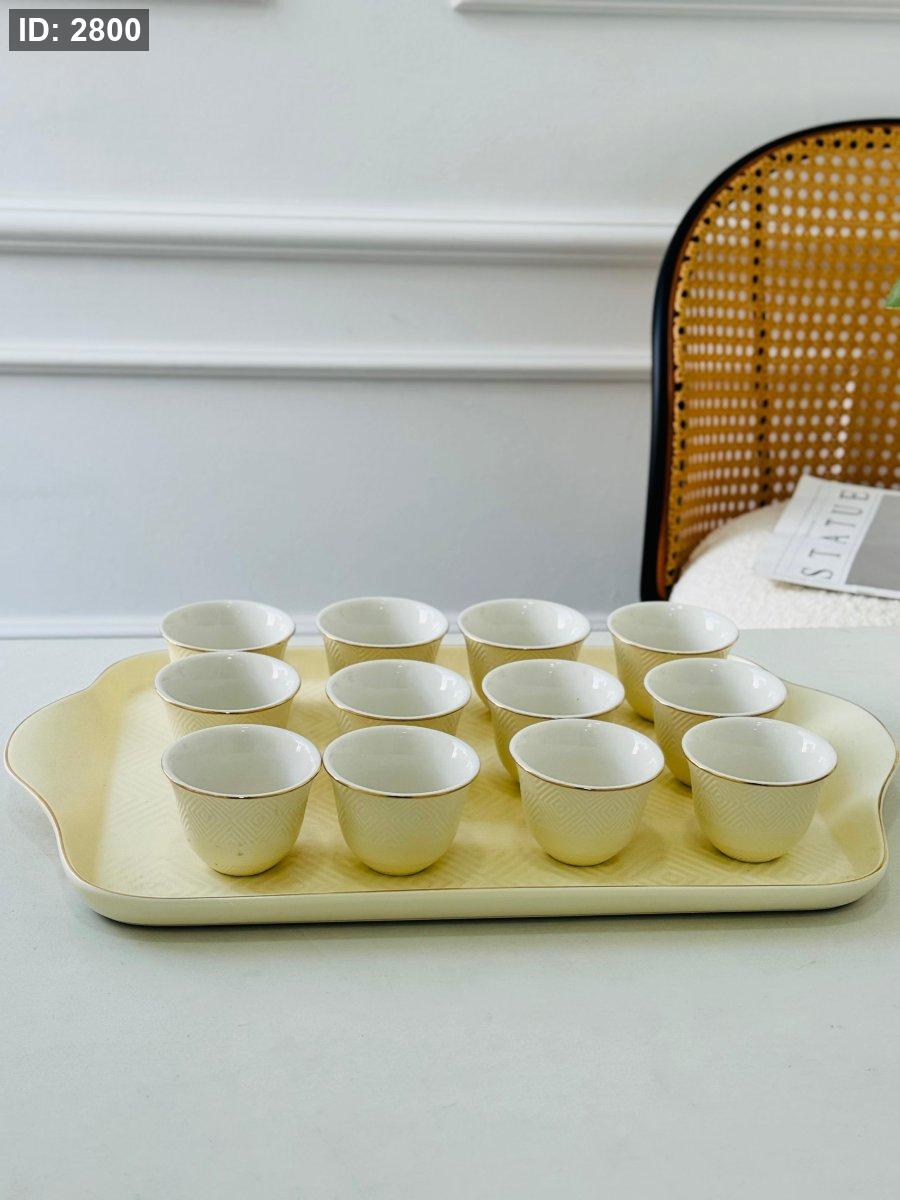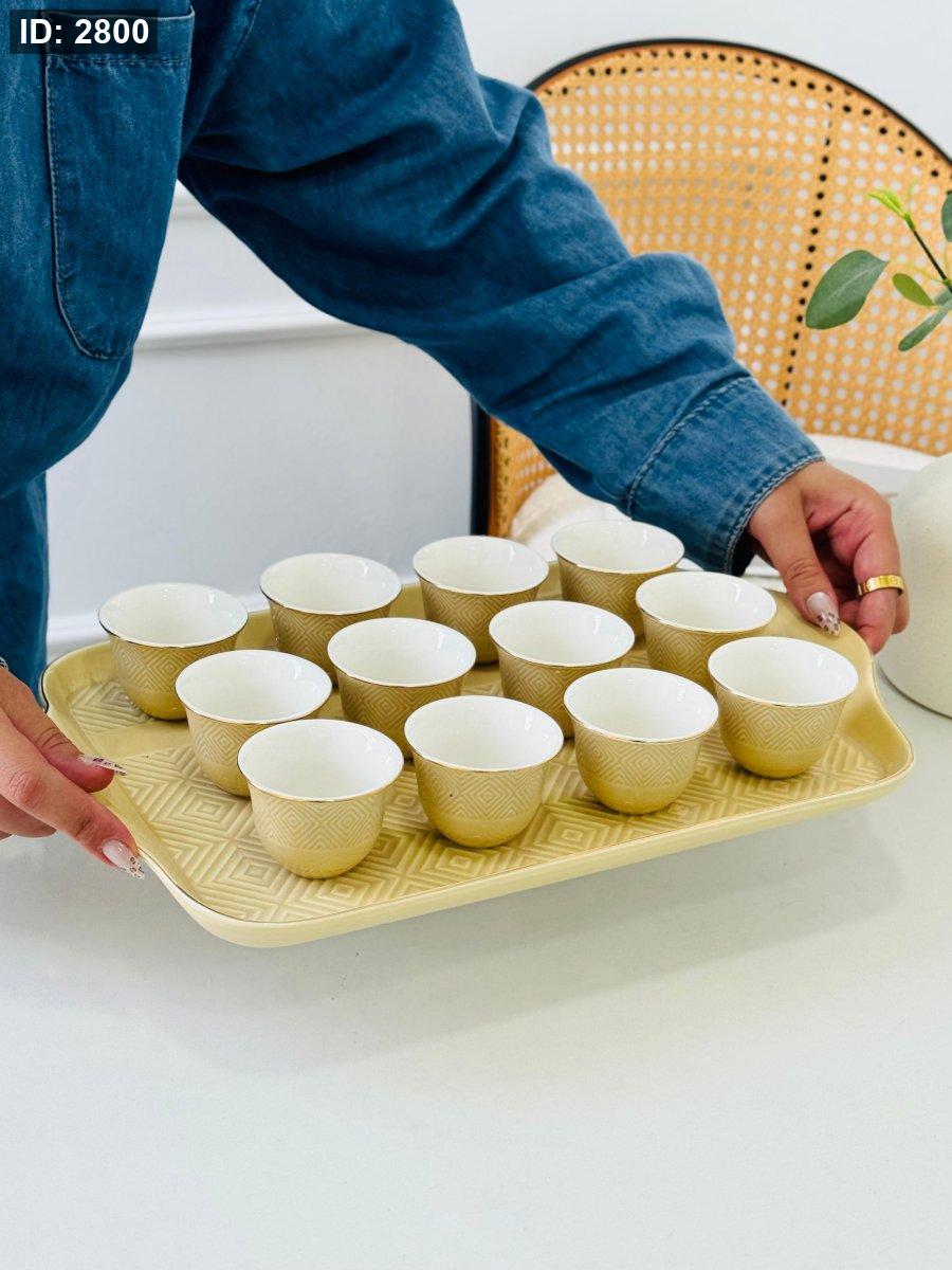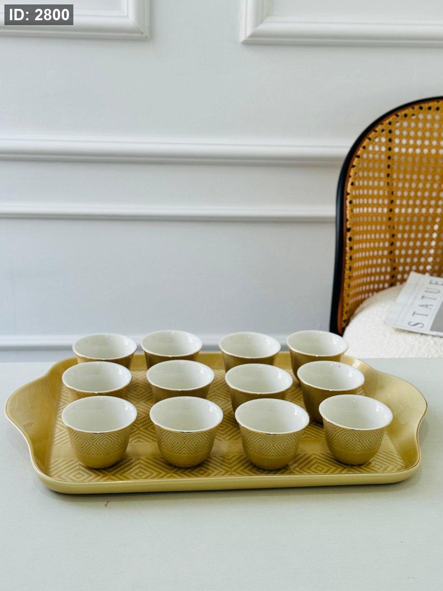 فناجين ساده/12مع صينيه امبر محزز مذهب