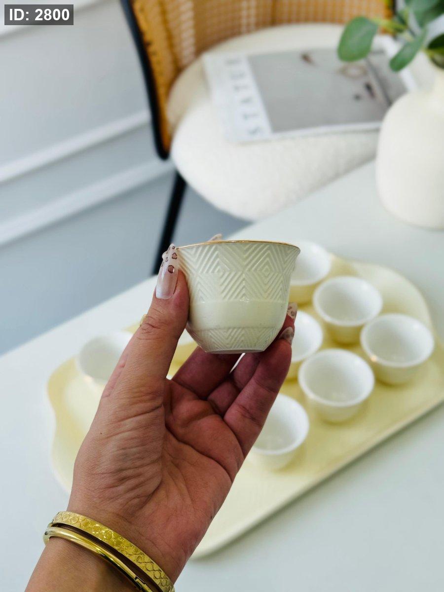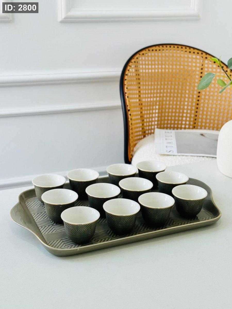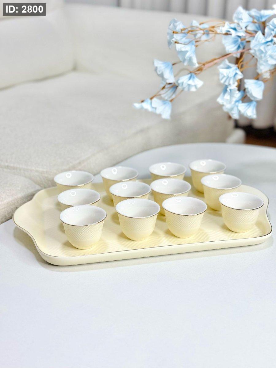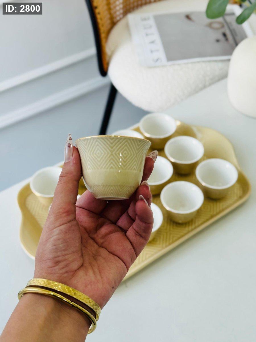 فناجين ساده/12مع صينيه امبر محزز مذهب