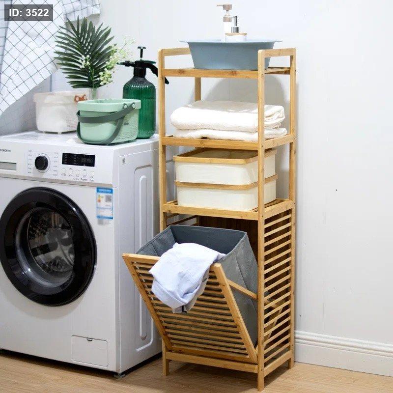 خزانه حمام بامبو 3رفوف+سله غسيل