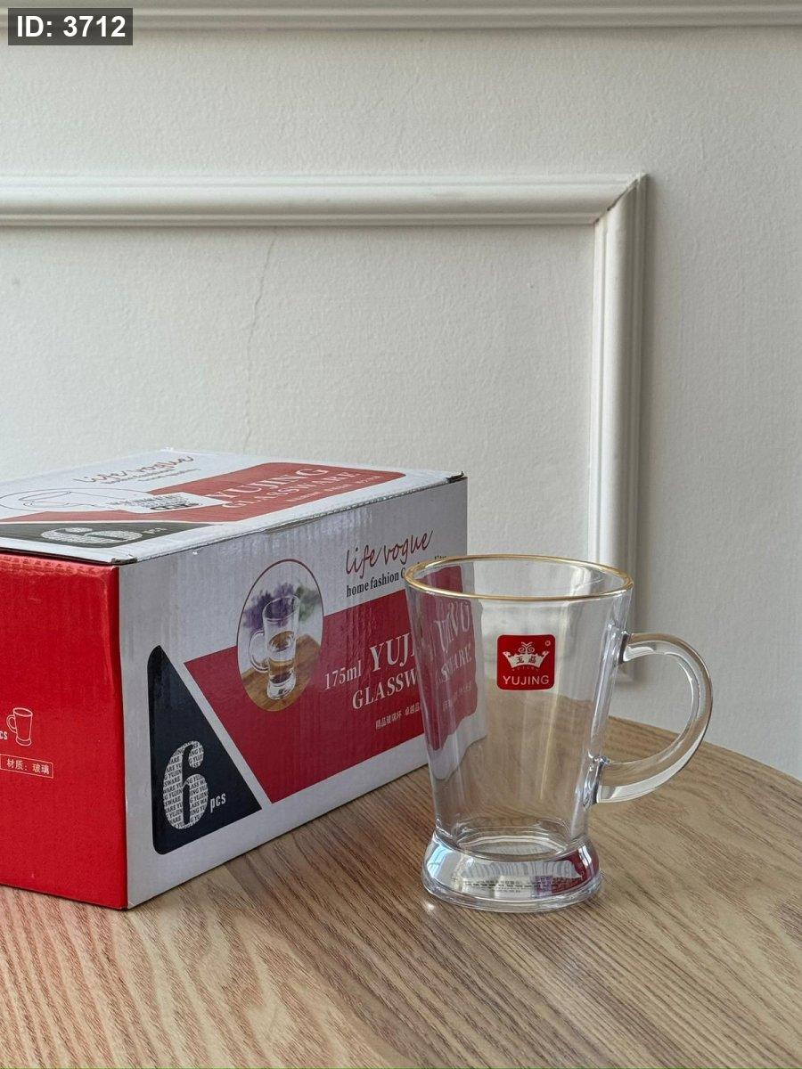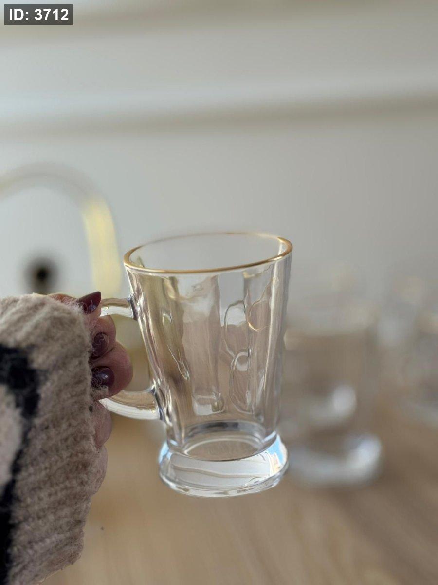 كاسات شاي شفاف حز ذهبي / 6