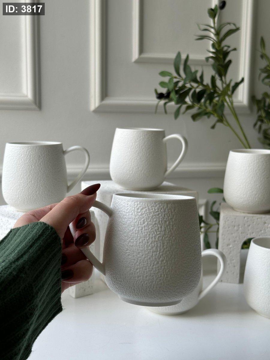 طقم مجات/6 بورسلان مبزر ابيض مط