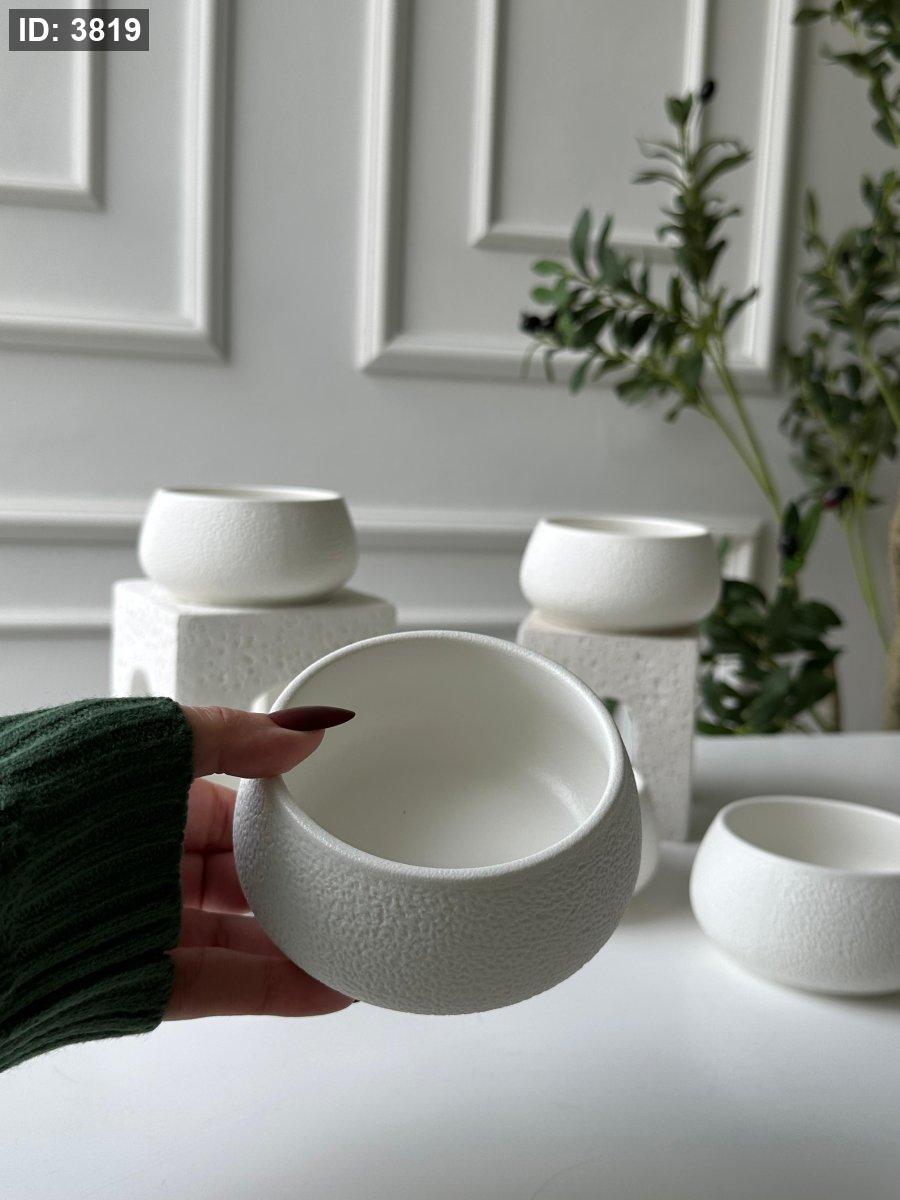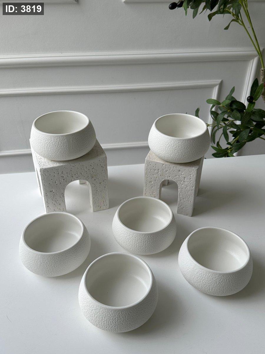 طقم صحون مكسرات/6 بورسلان مبزر ابيض مط