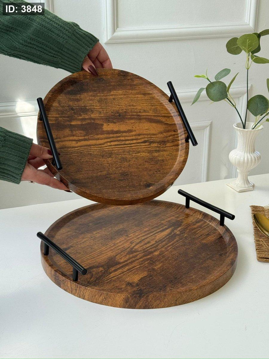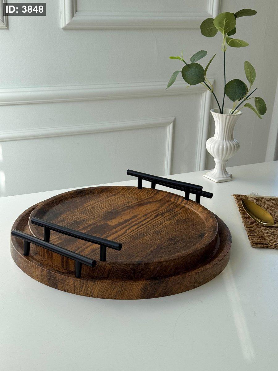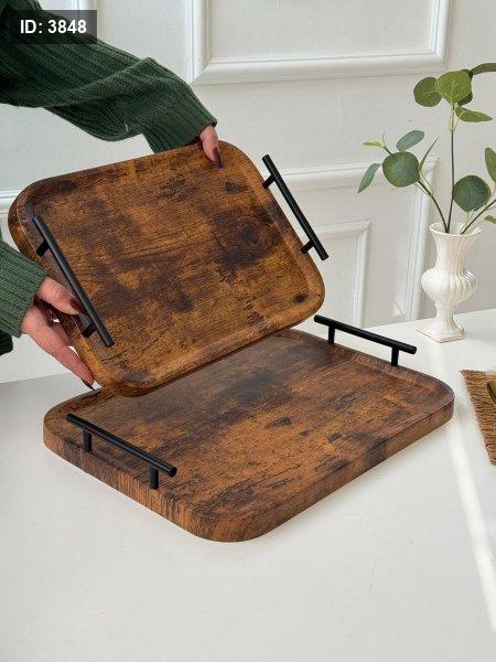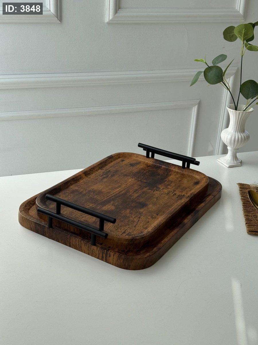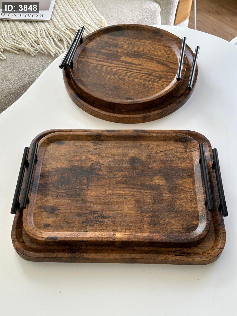 طقم صواني خشب قطعتين