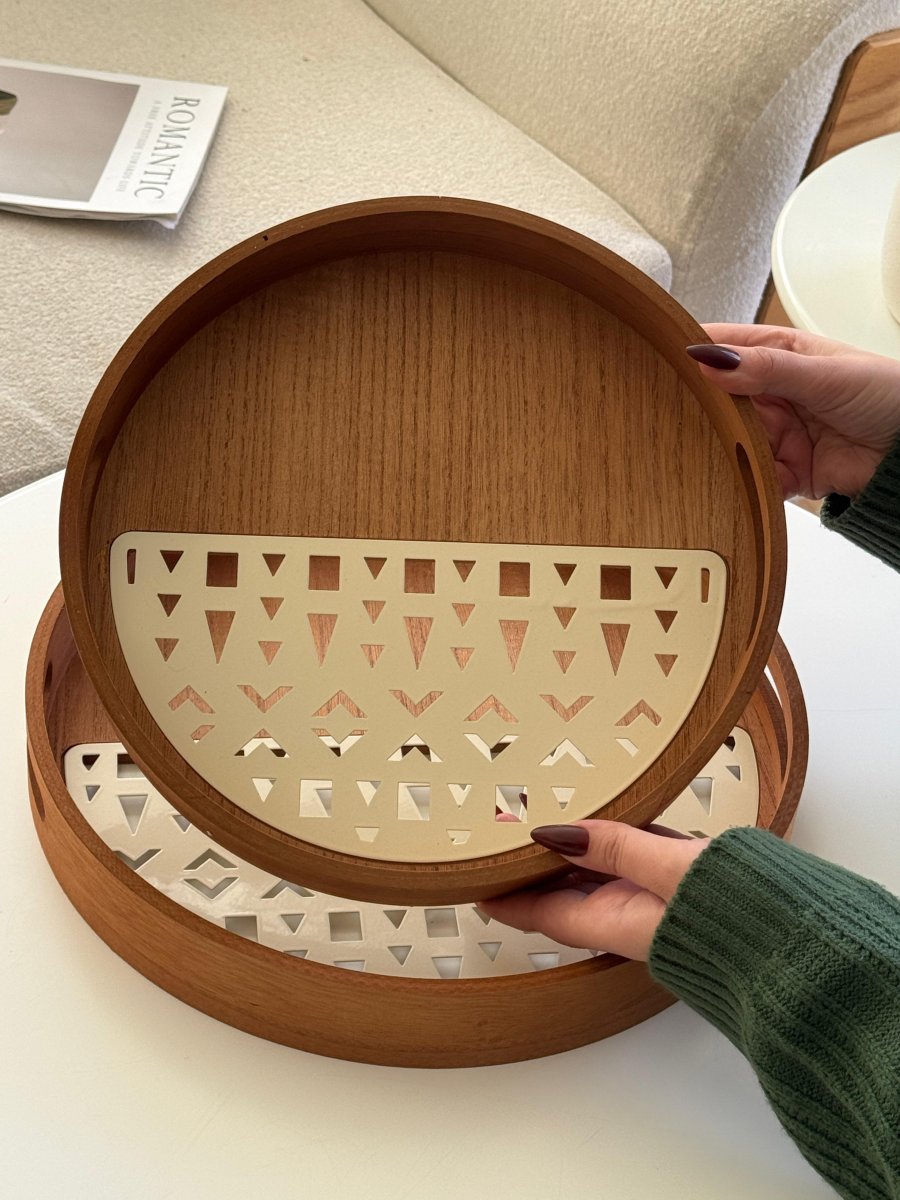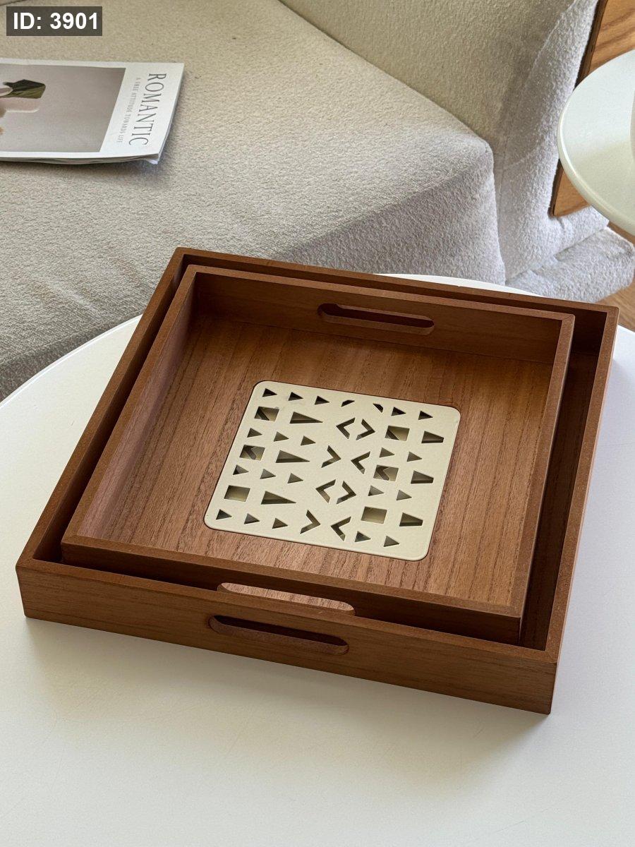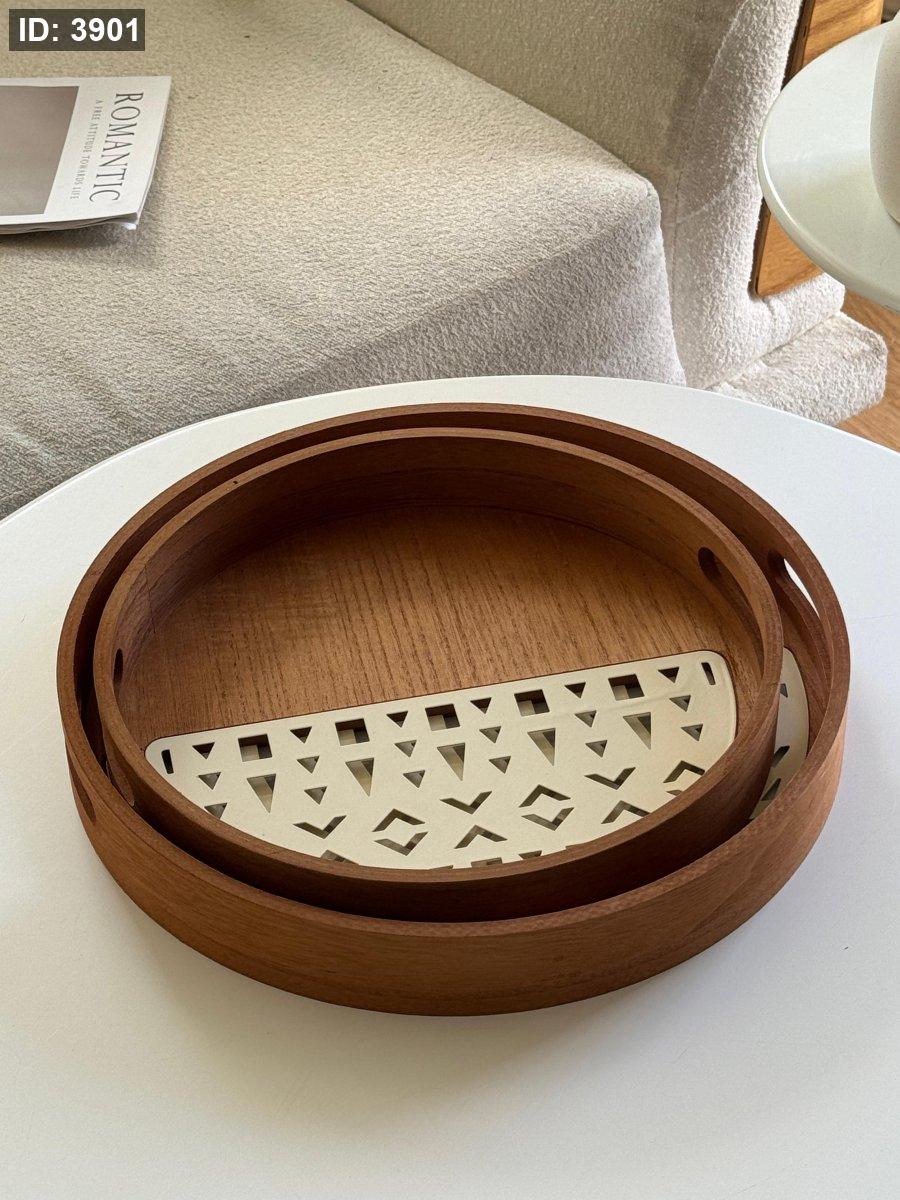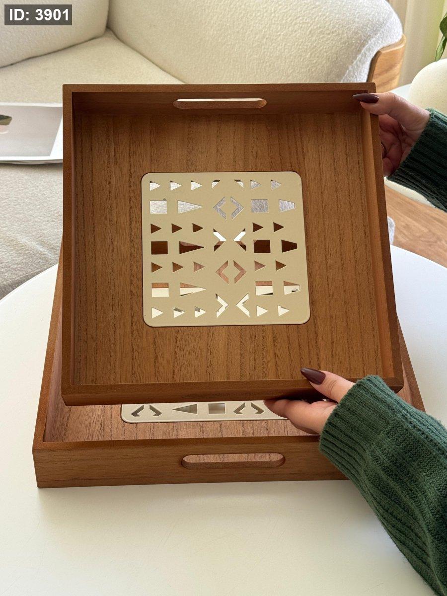 طقم صواني خشب قطعتين