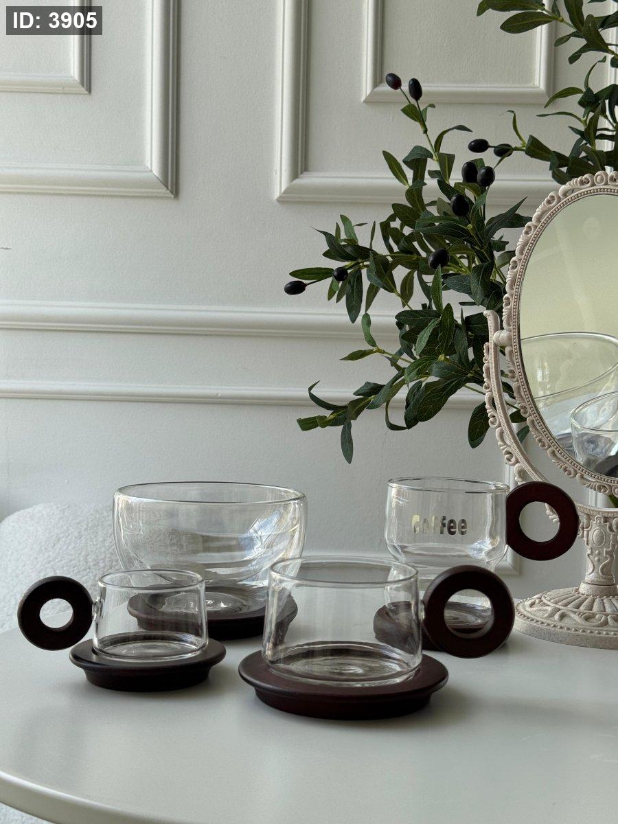 فنجان يد خشب + صحن خشب