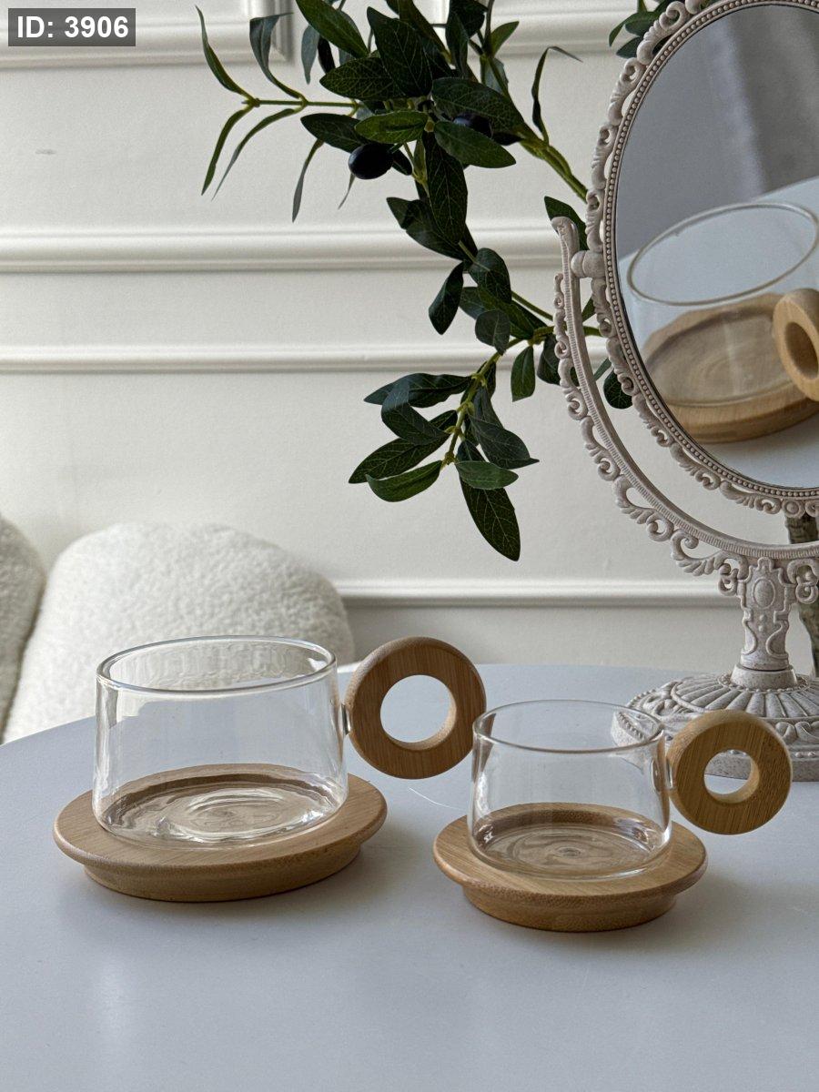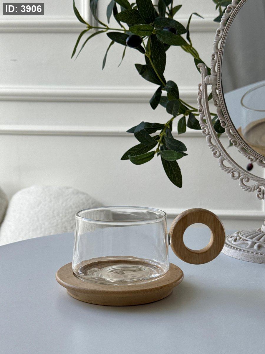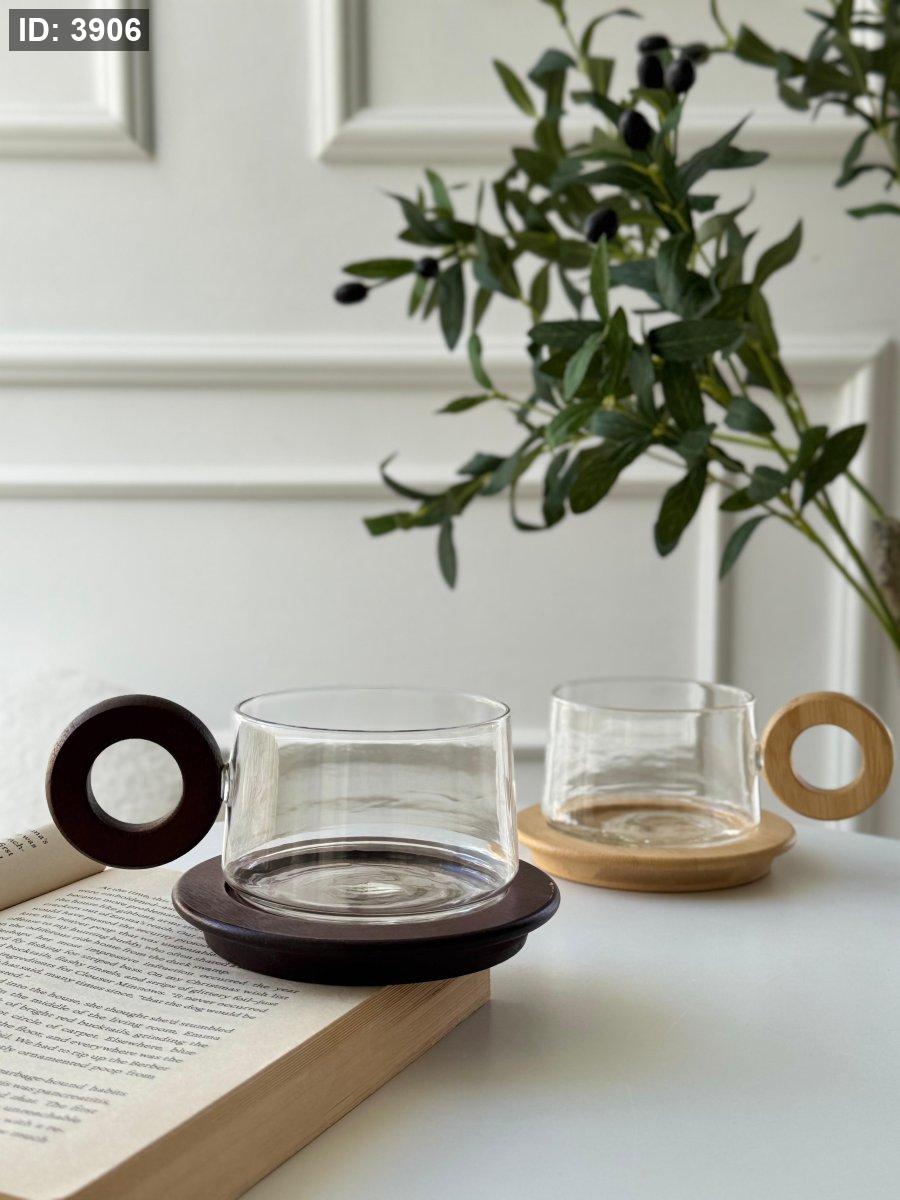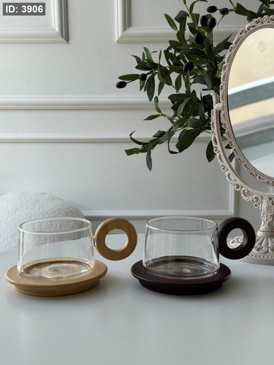 فنجان يد خشب + صحن خشب