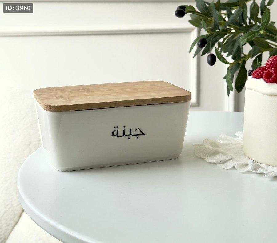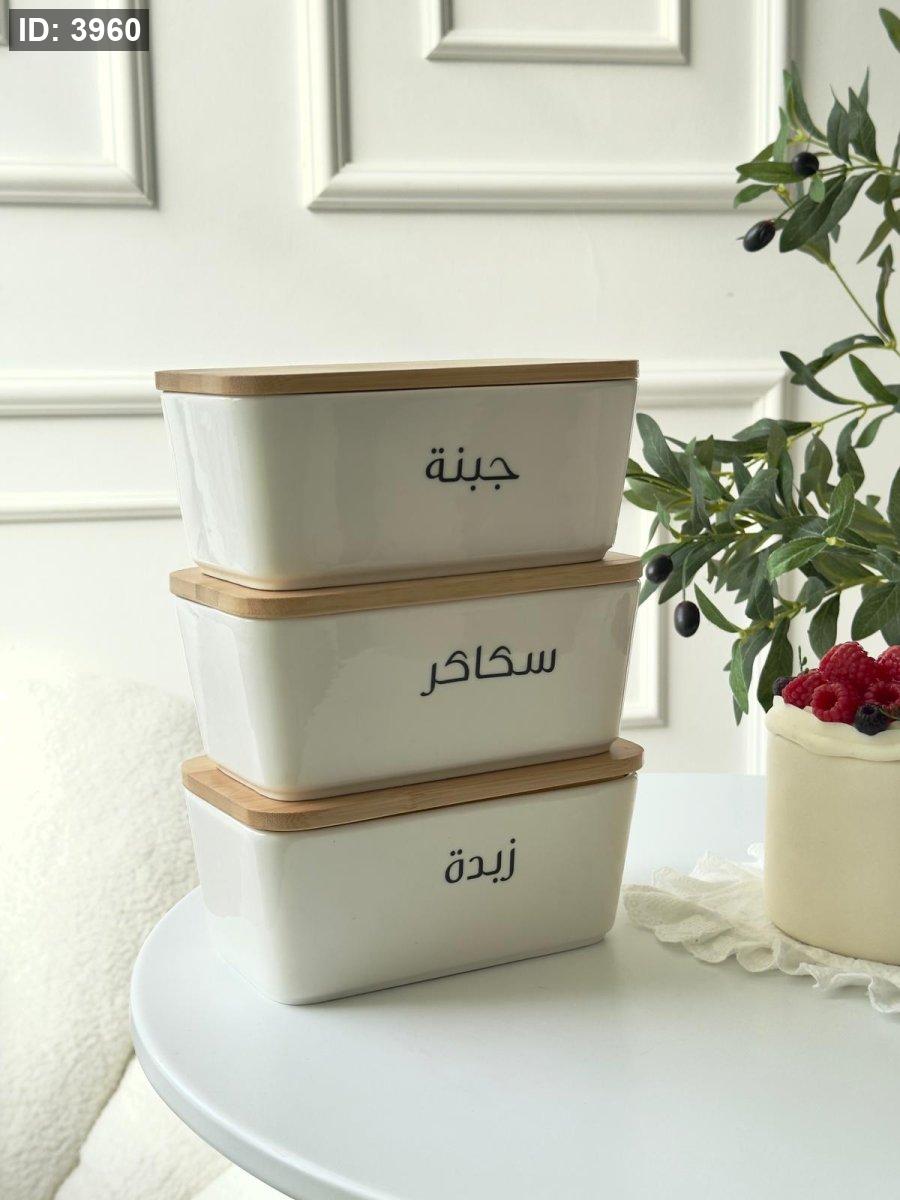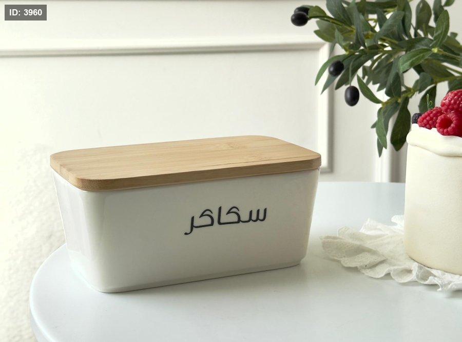 مرتبان بورسلان مستطيل غطاء بامبو كتابه