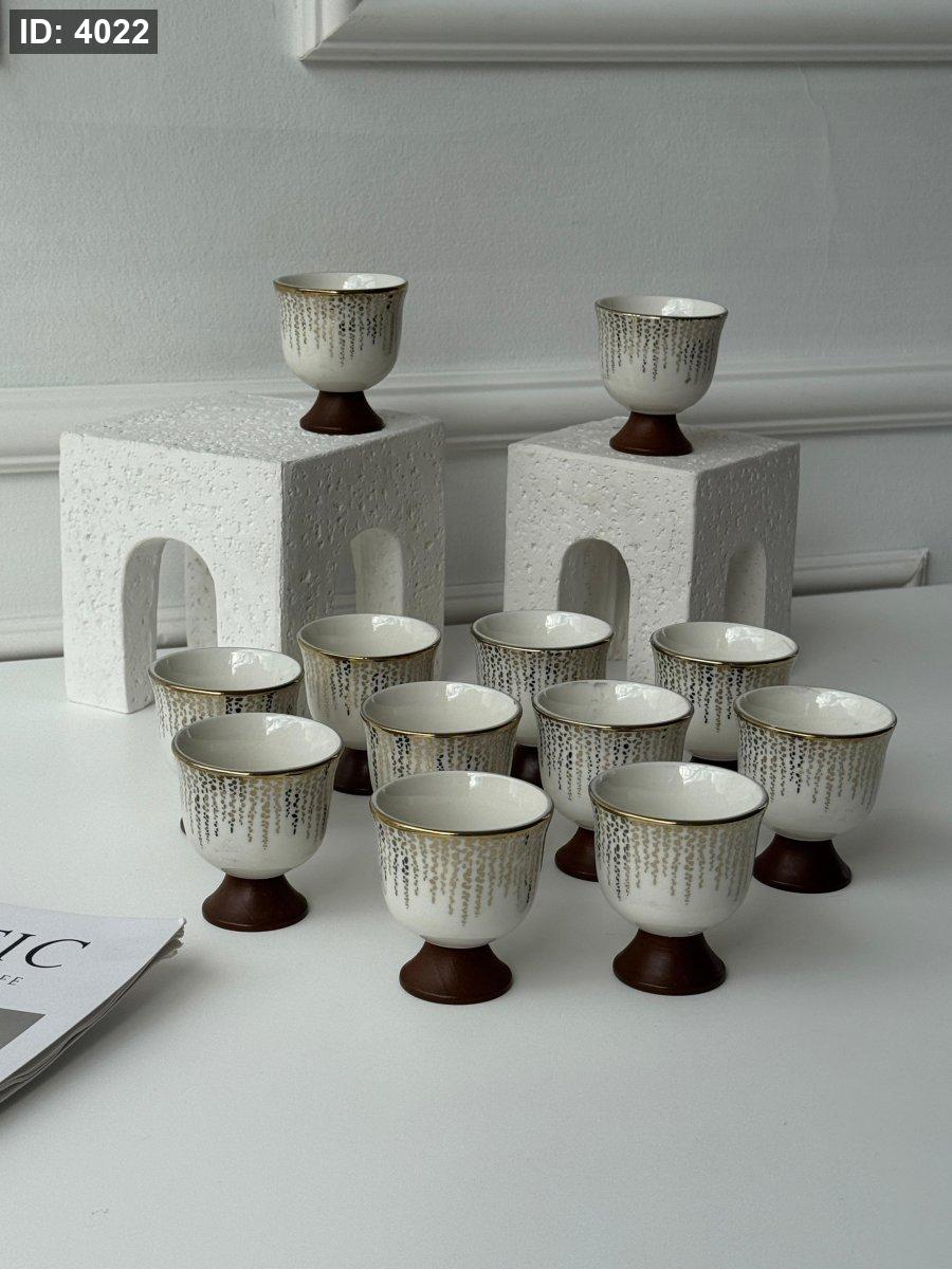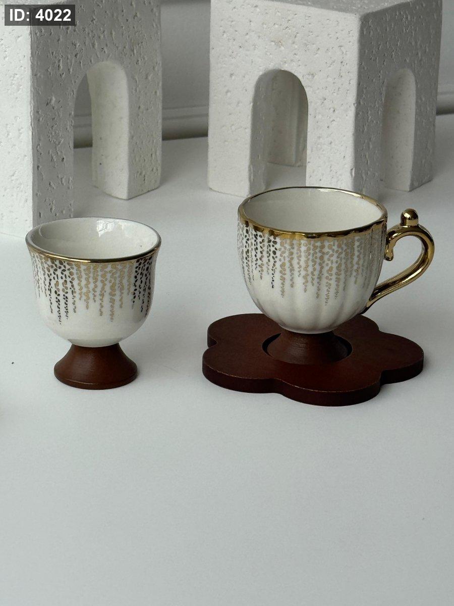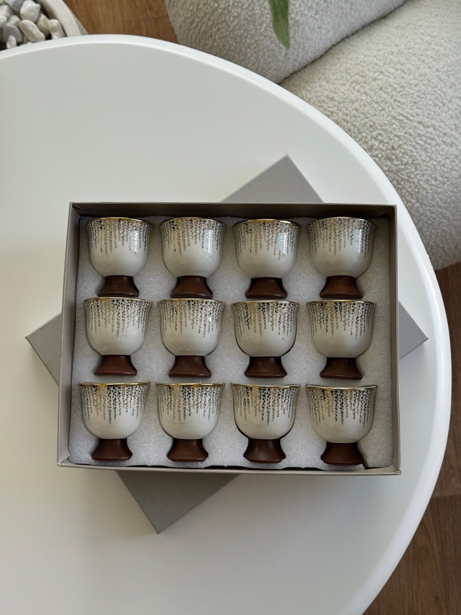 فناجين ساده بورسلان مذهب رجل خشب / 12