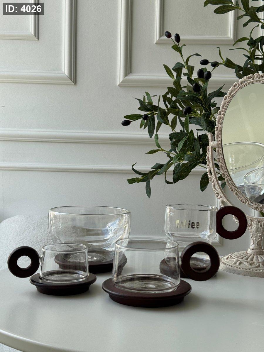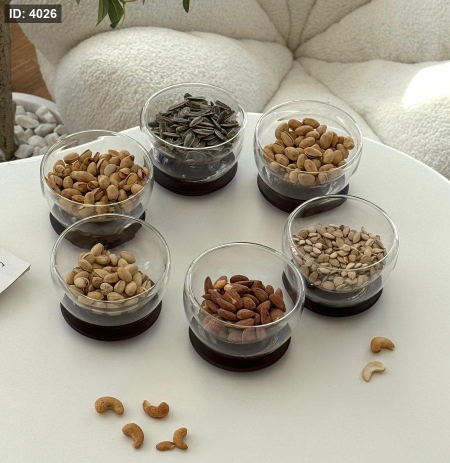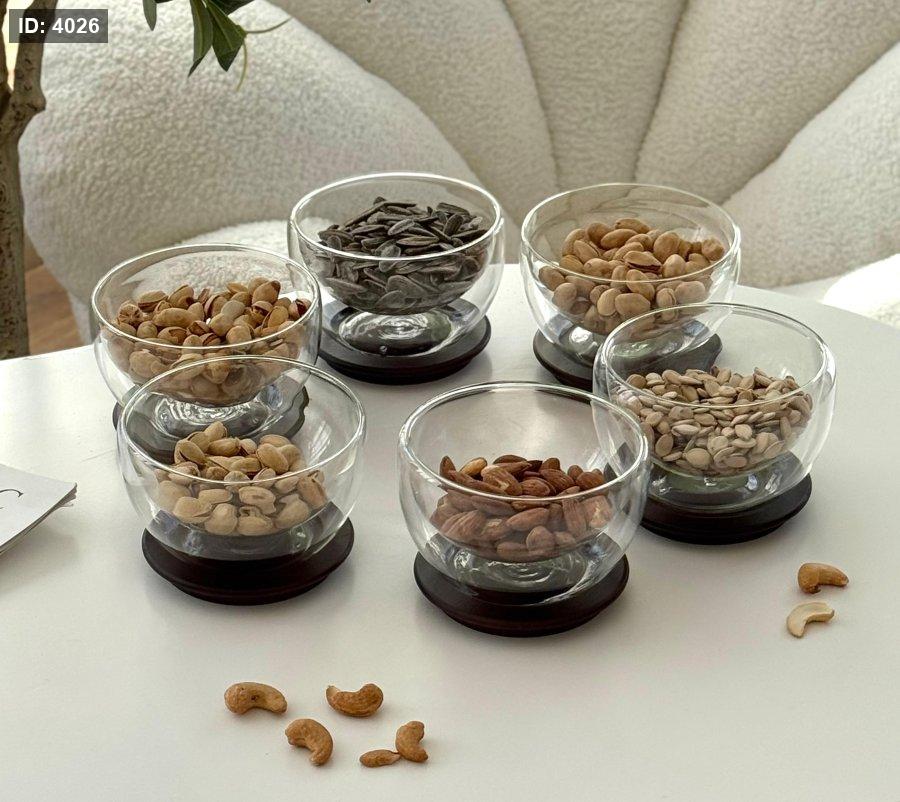 صحن مكسرات دبل جلاس + صحن خشب