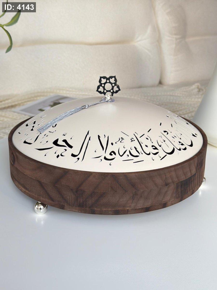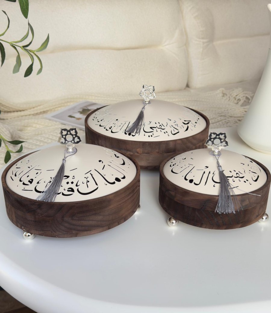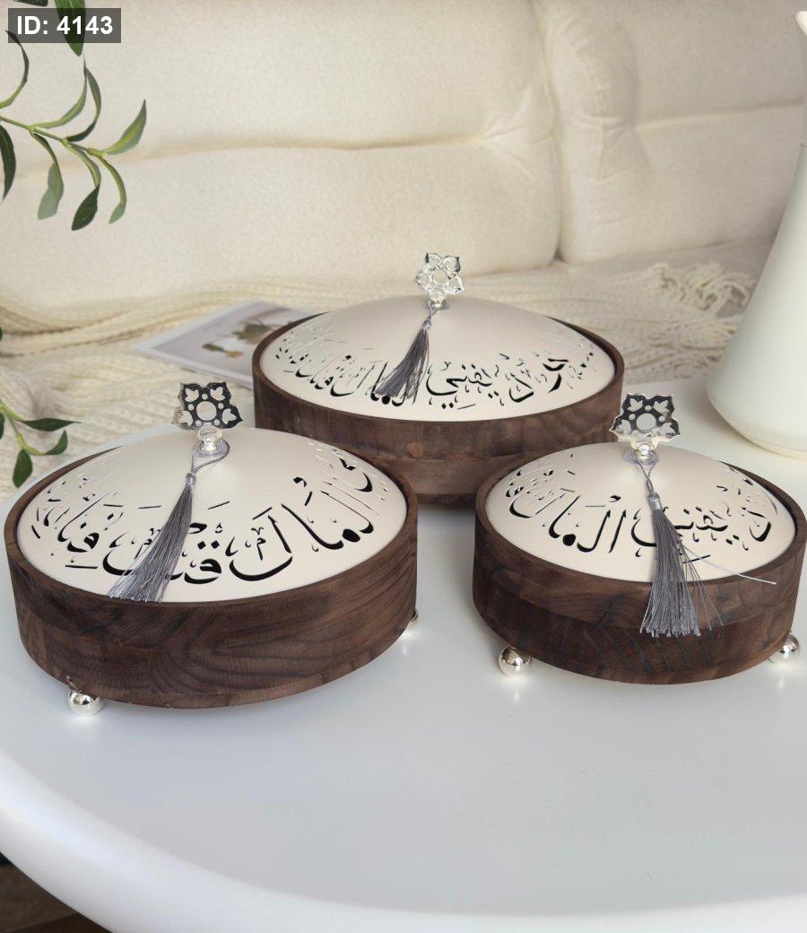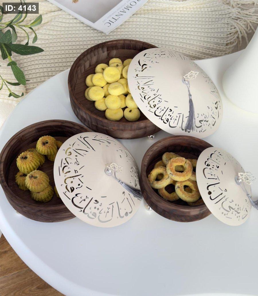 طقم مضايف خشب غطا معدن كتابه عربيه 3 قطع (26+21+17)سم