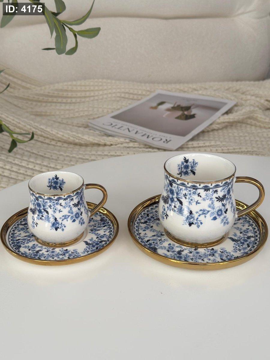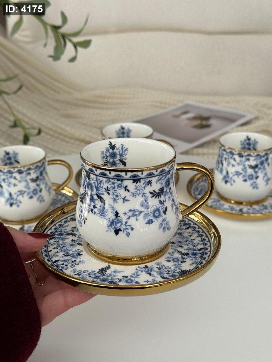طقم فناجين مورد مذهب 6+6 العصفور الازرق