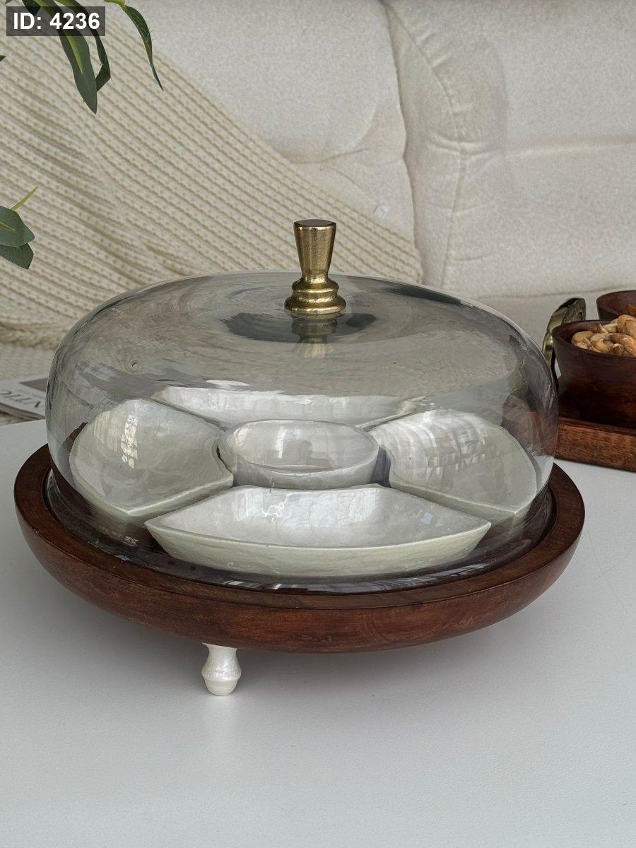 مضيفه مدور مقسم غطا زجاج هندي (30*21سم)