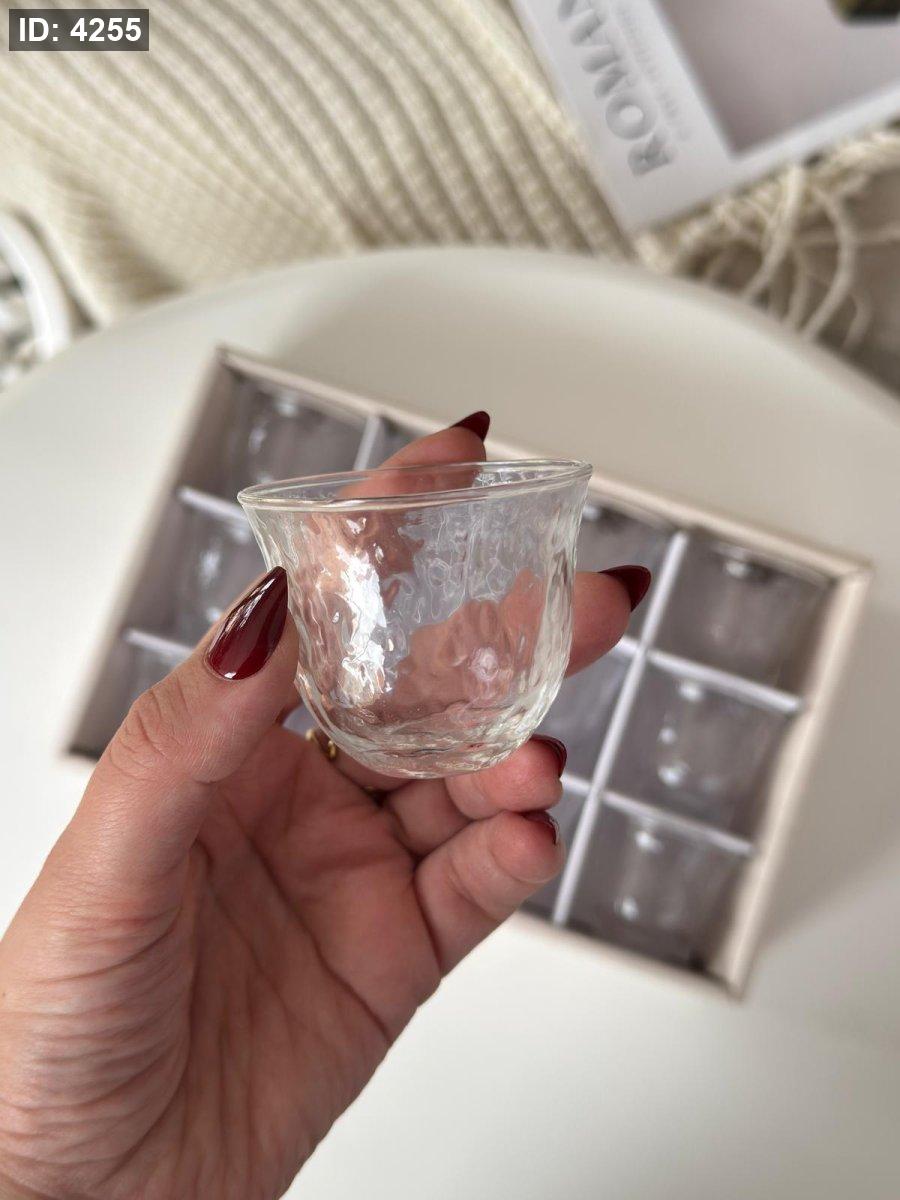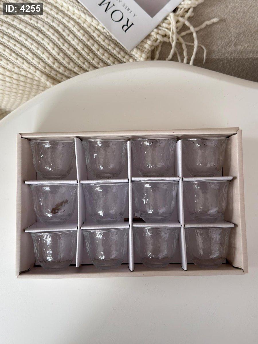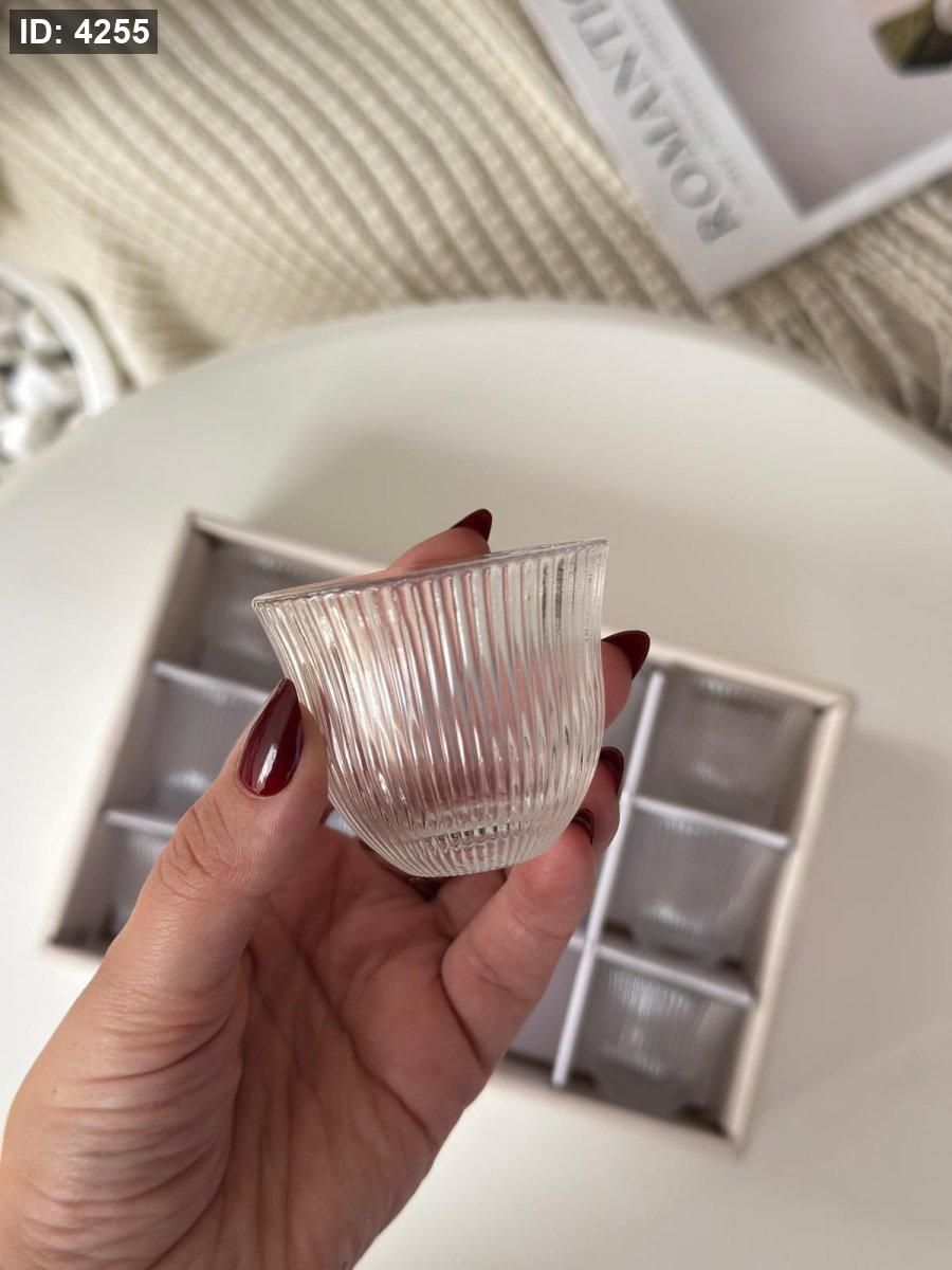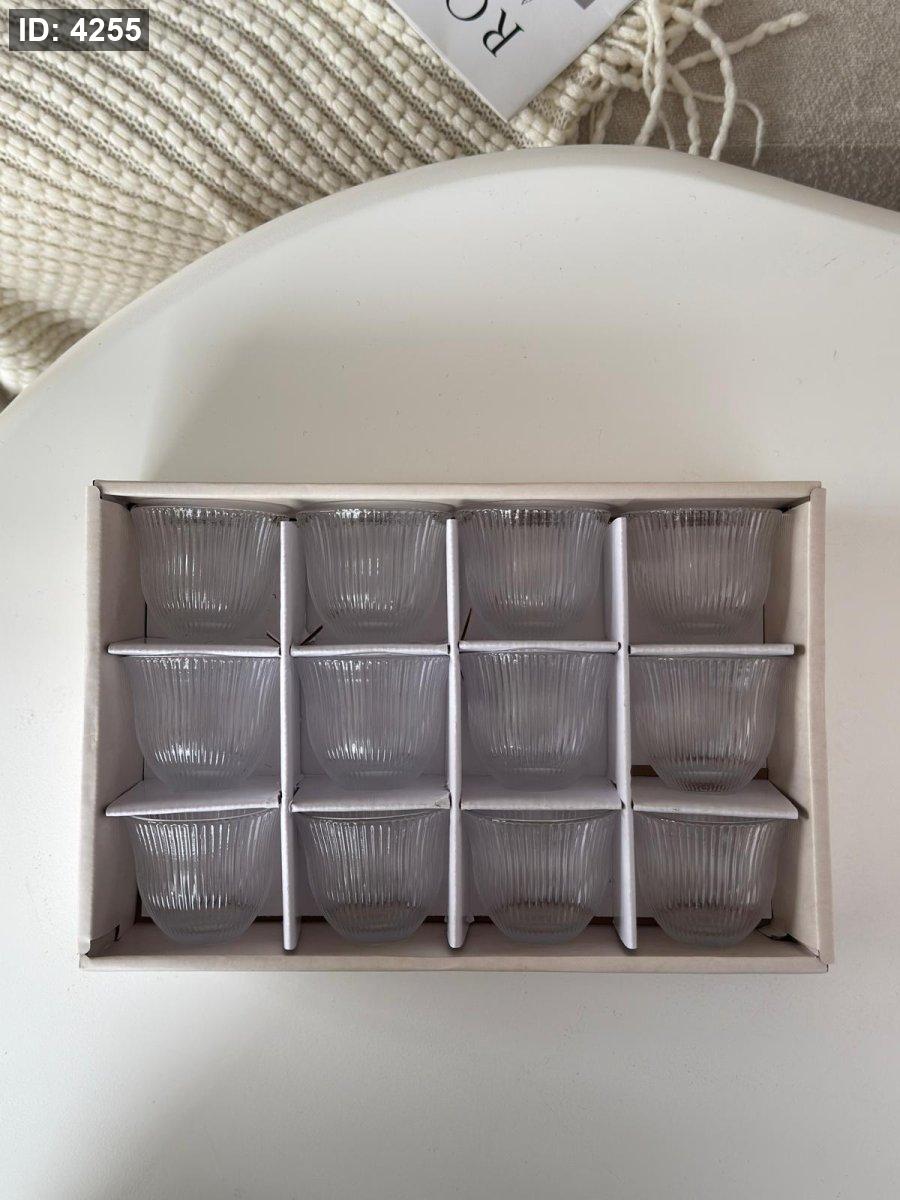 فناجين ساده زجاج حز فضي / 12