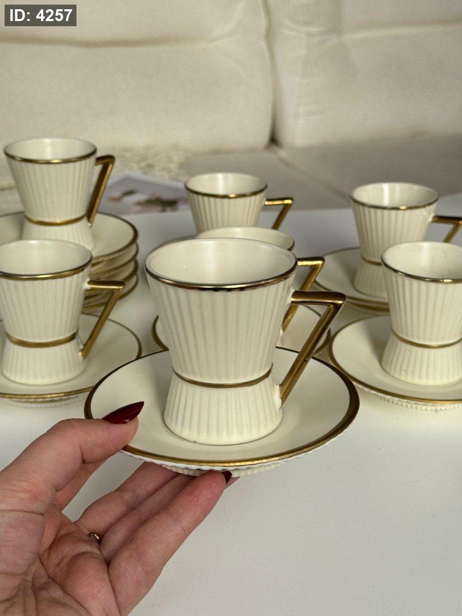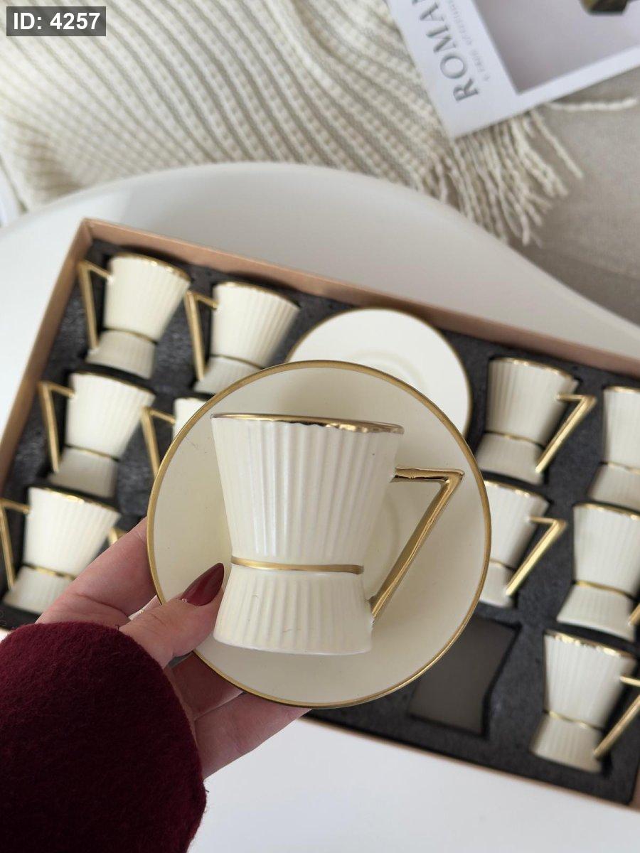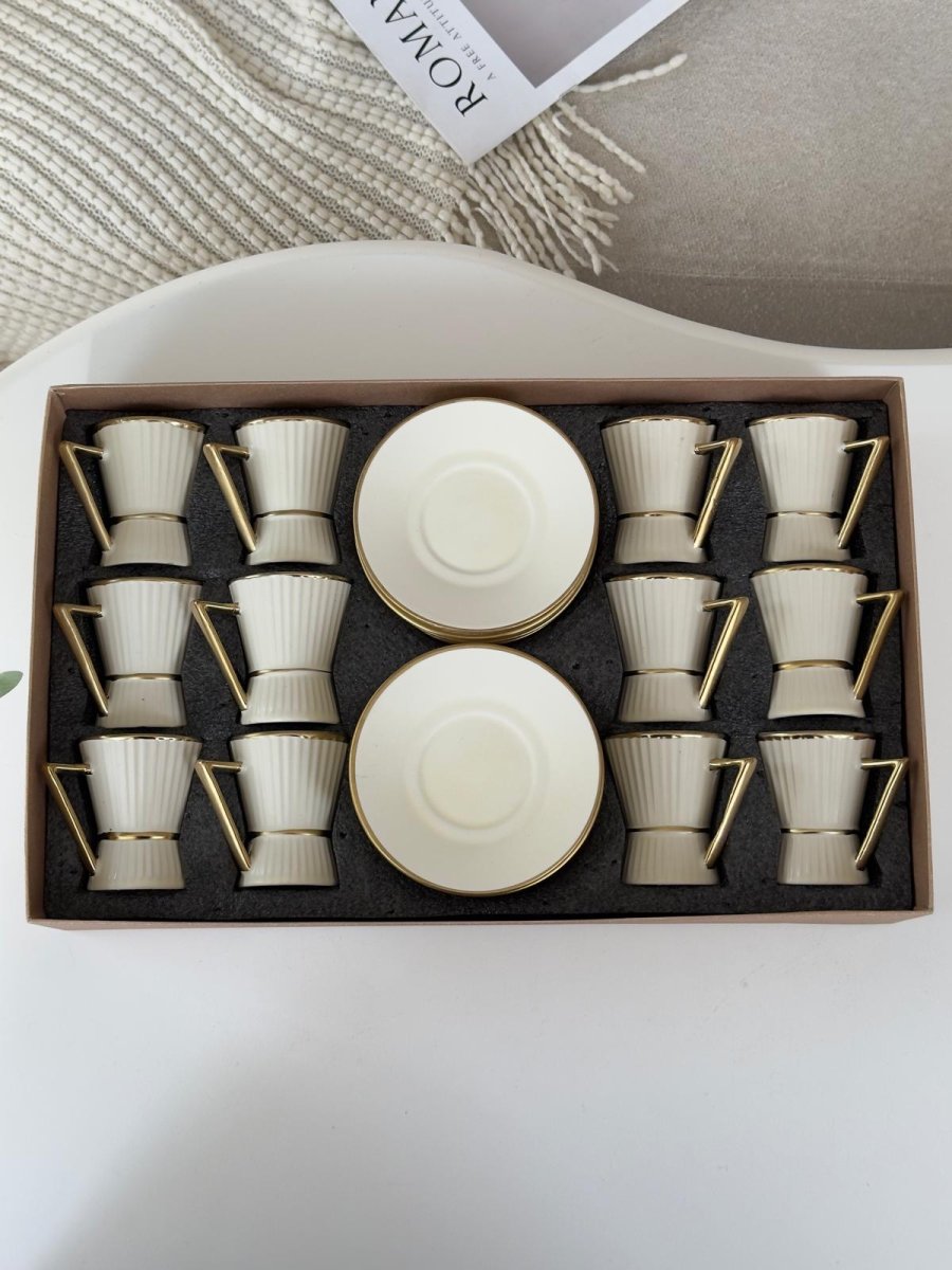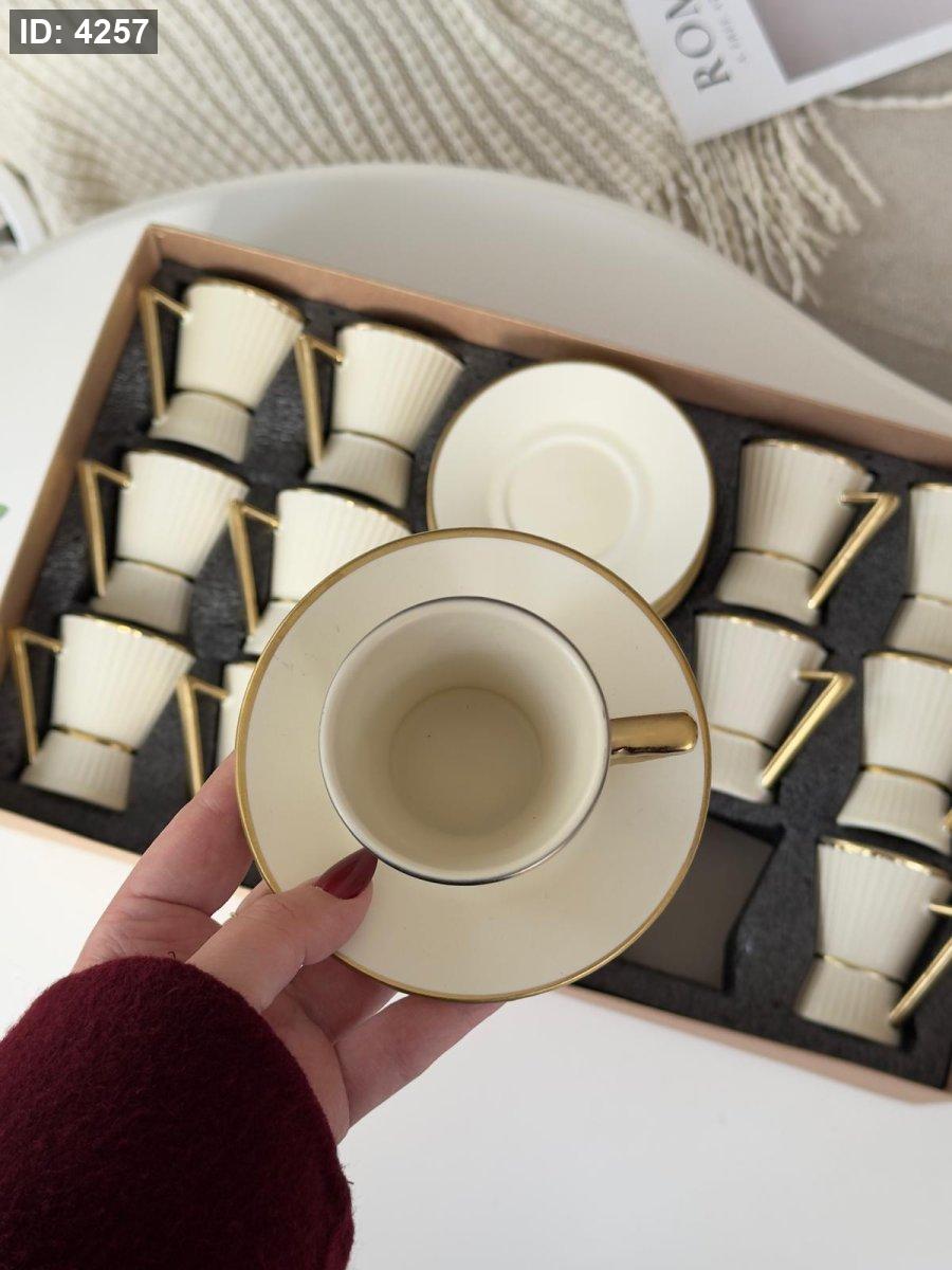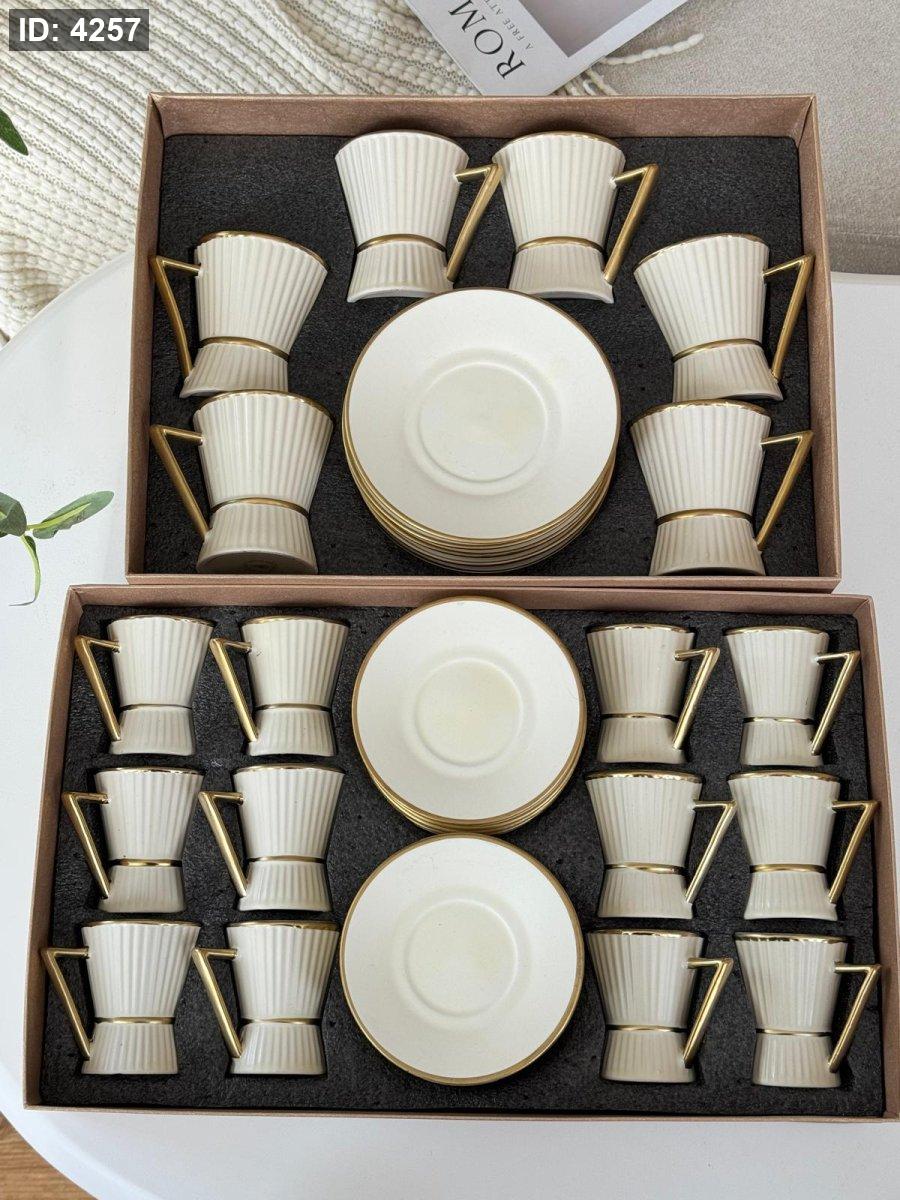 فناجين قهوه بورسلان محزز مذهب 12+12