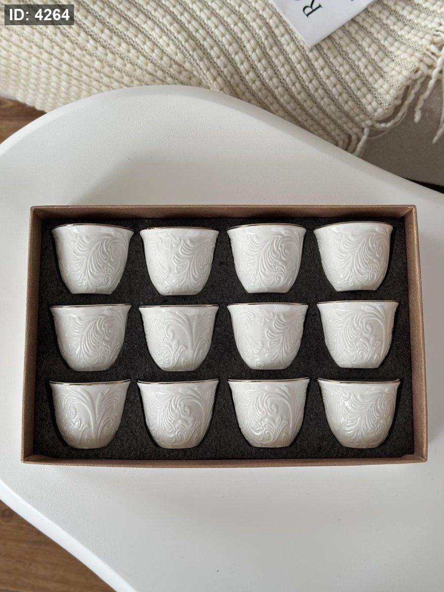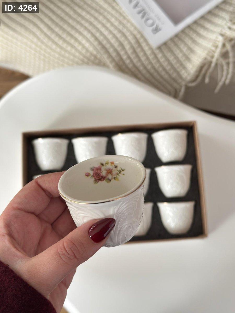فناجين ساده بورسلان مشجر مذهب ورده داخلي / 12
