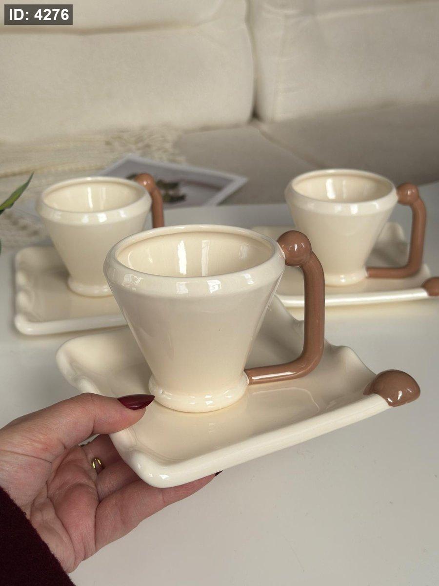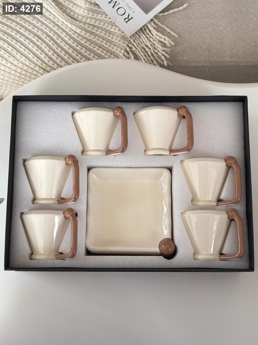 كاسات شاي بورسلان يد ديكور 6+6