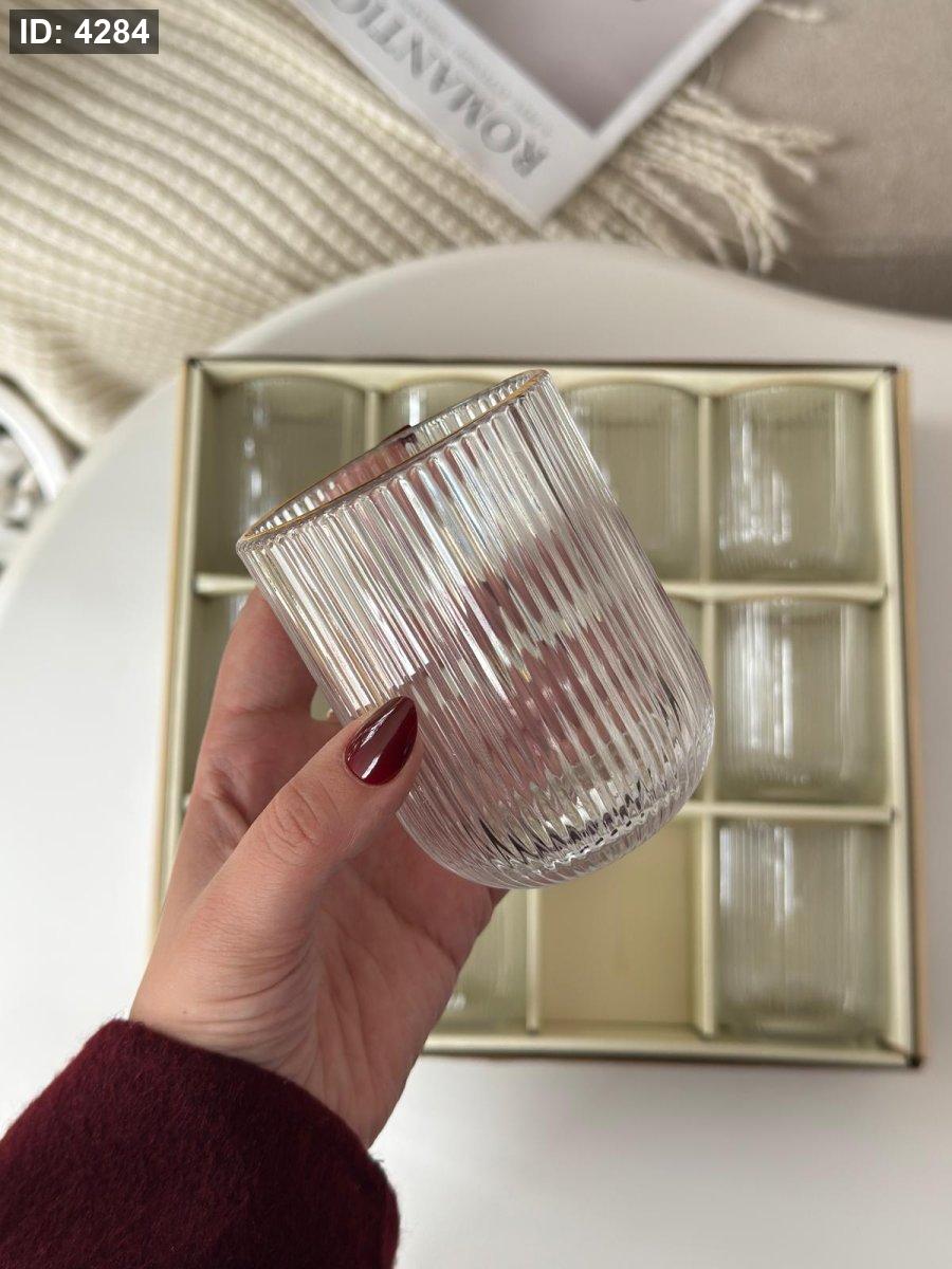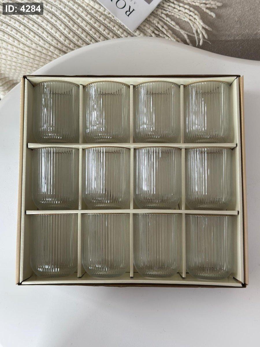 كاسات عصير زجاج حز مذهب / 12