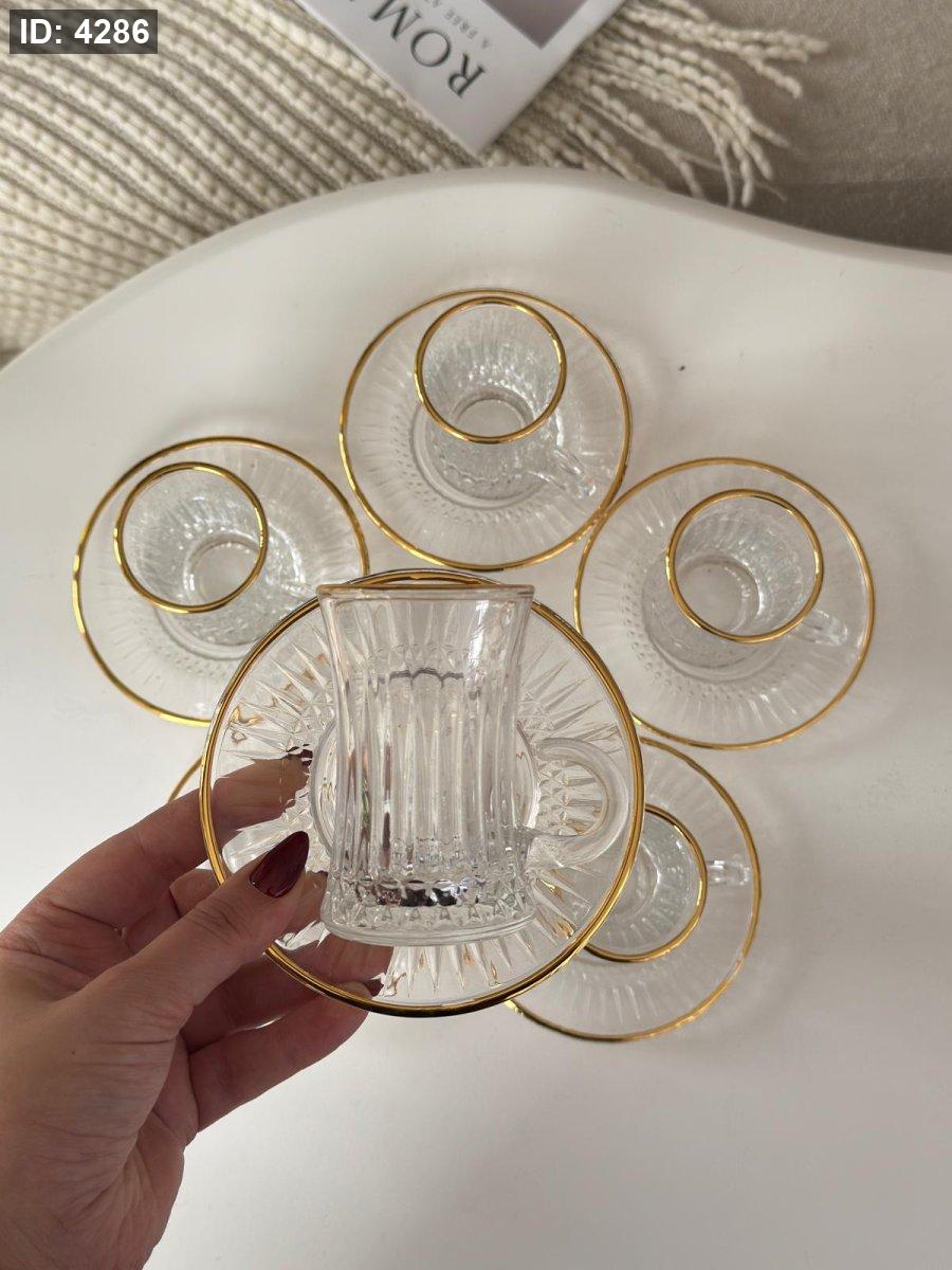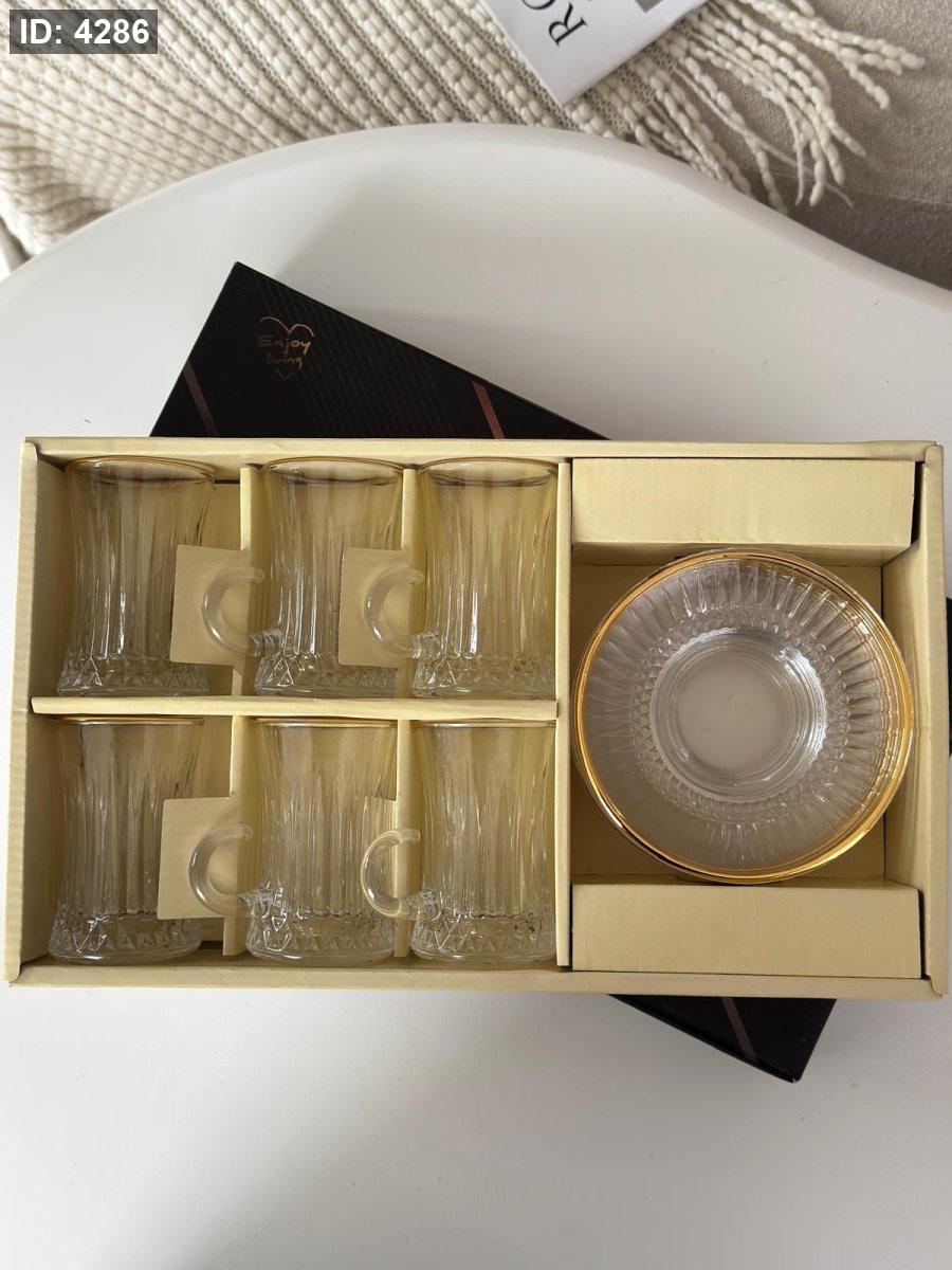 استكانه زجاج محزز حز مذهب 6+6
