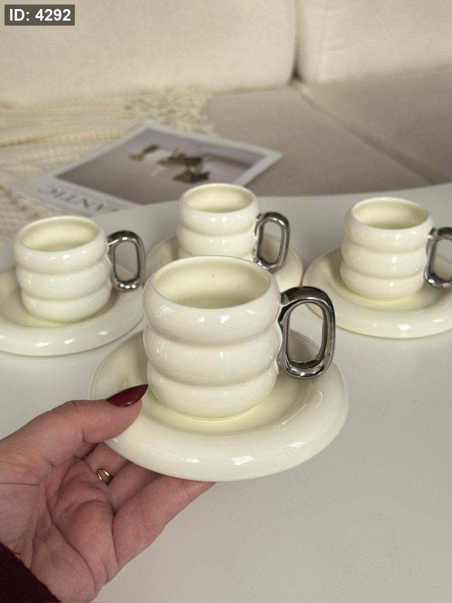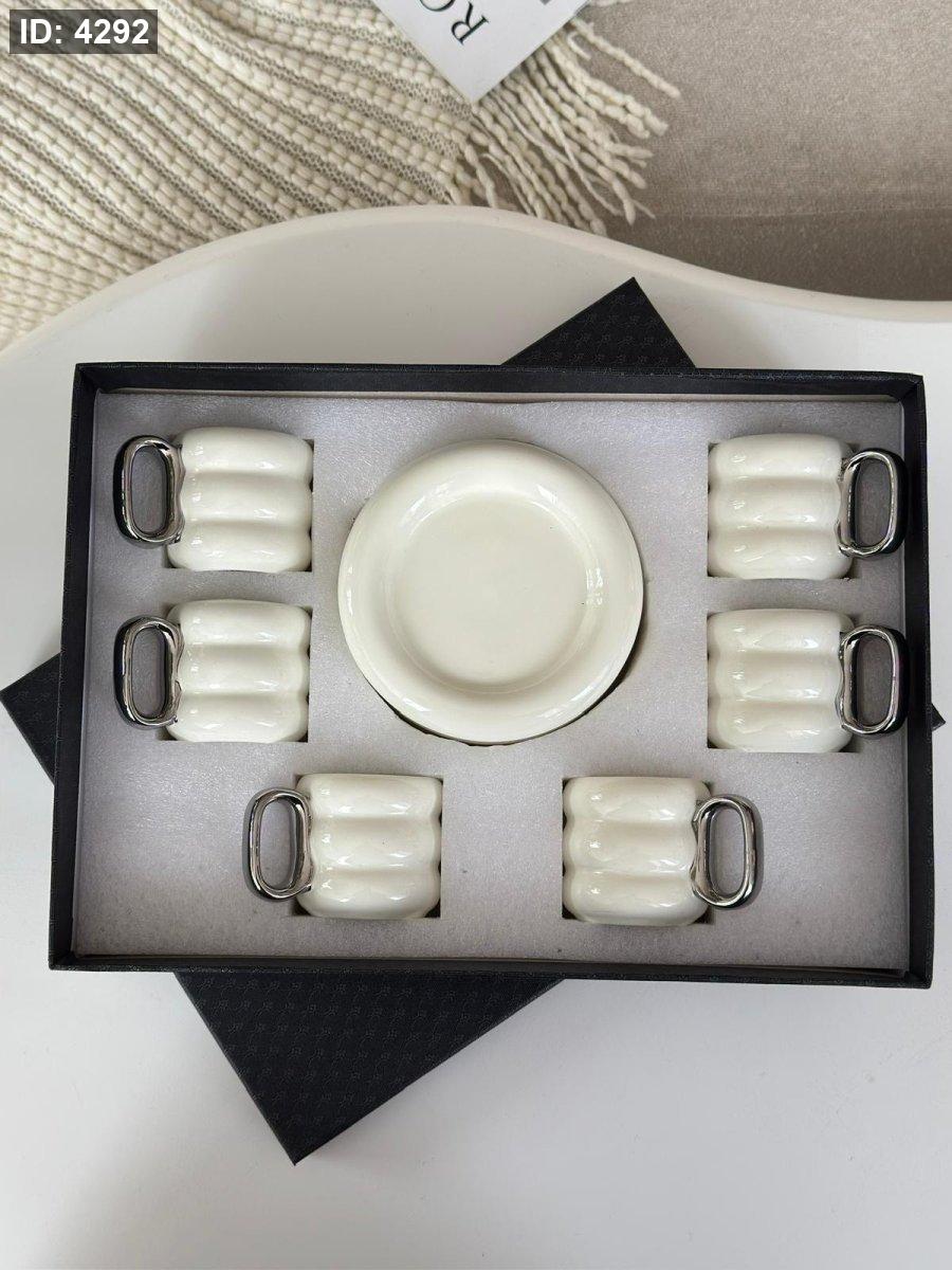 فناجين قهوه بورسلان يد ديكور فضي 6+6