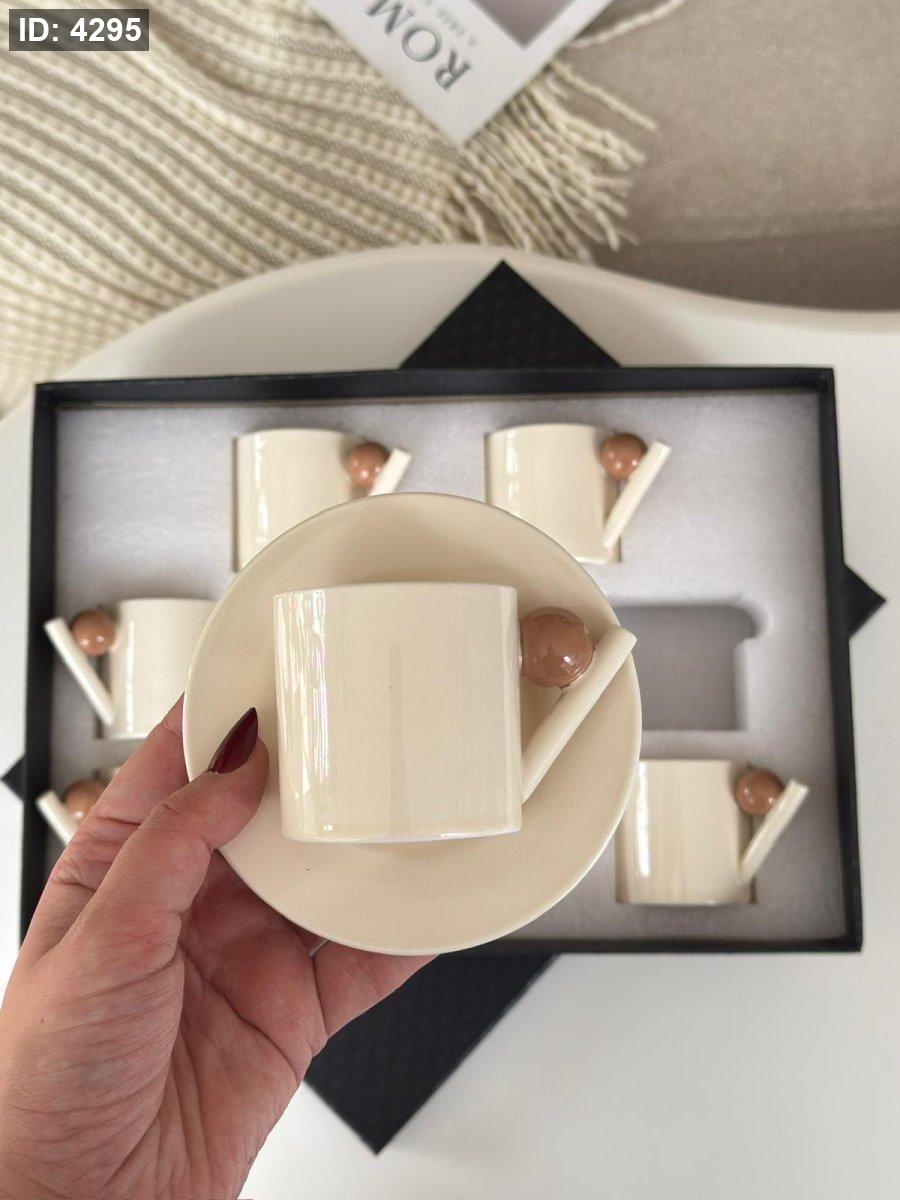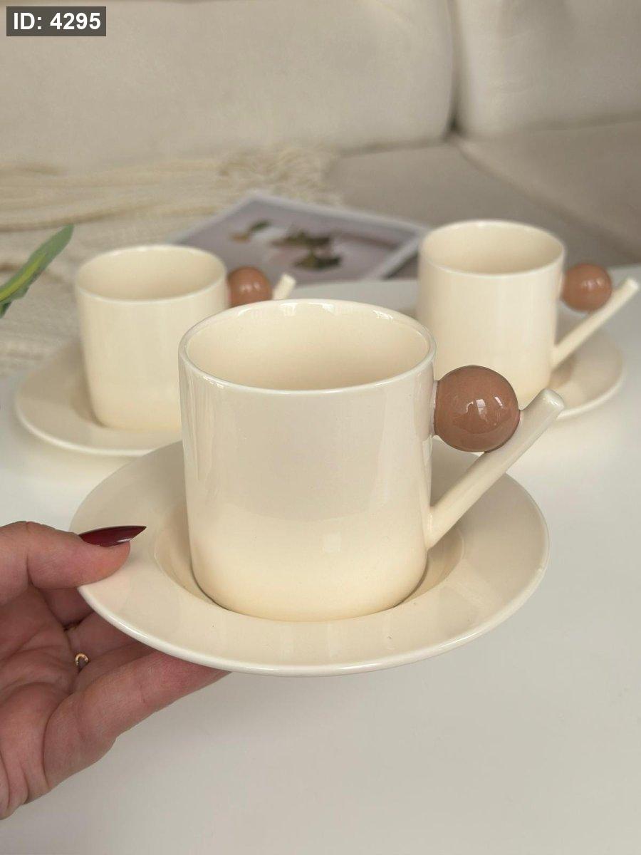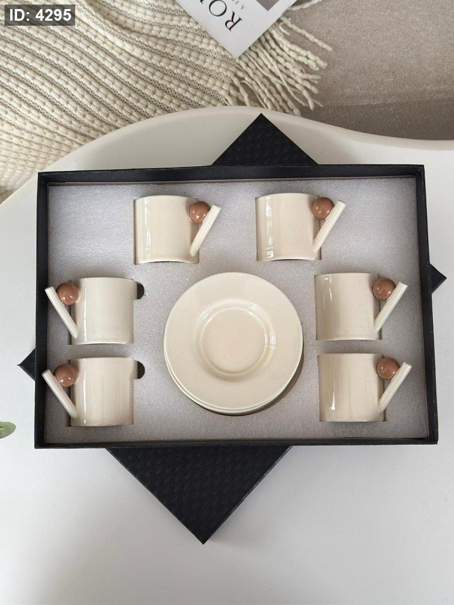 فناجين قهوه بورسلان يد ديكور بني 6+6