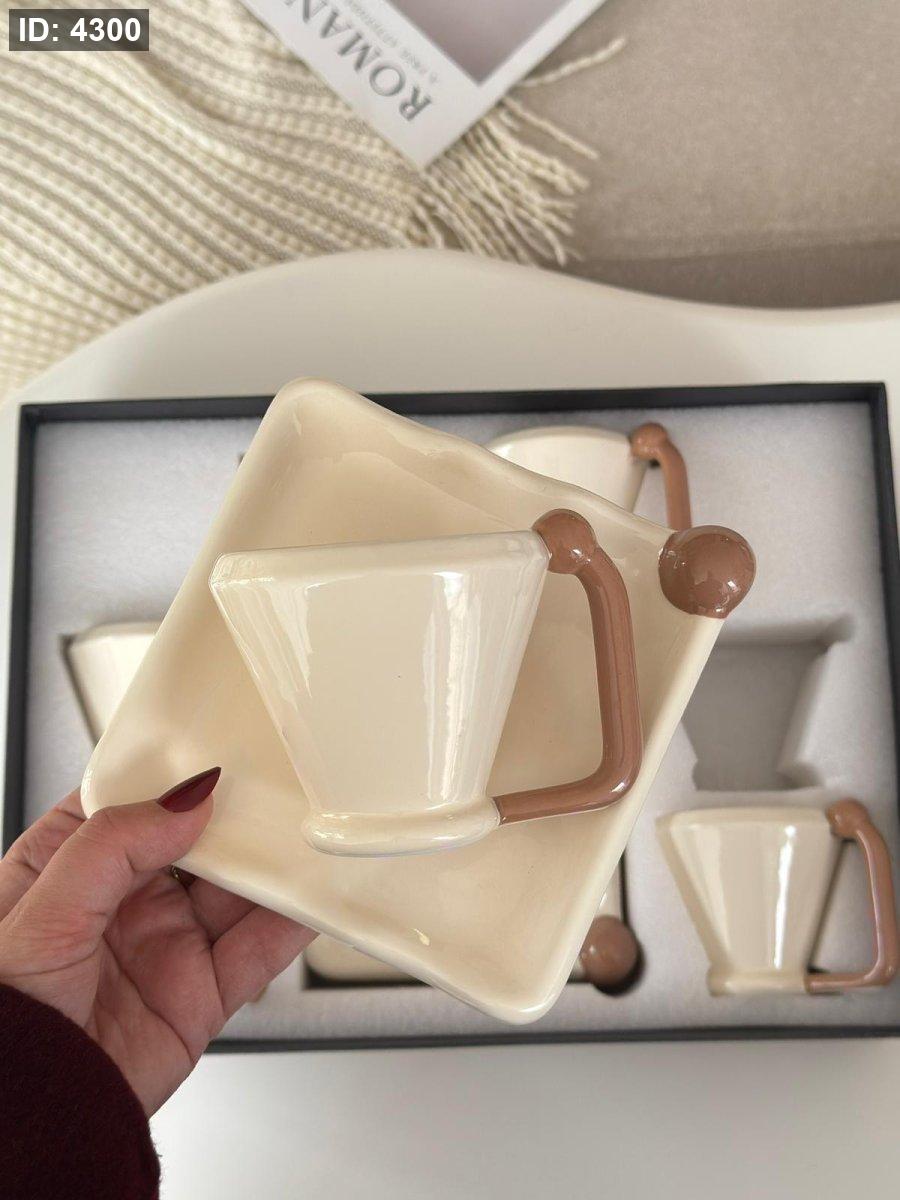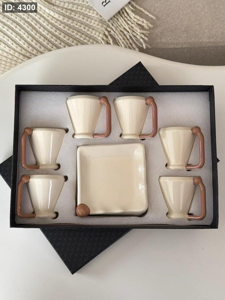 فناجين شاي بورسلان يد ديكور بني 6+6
