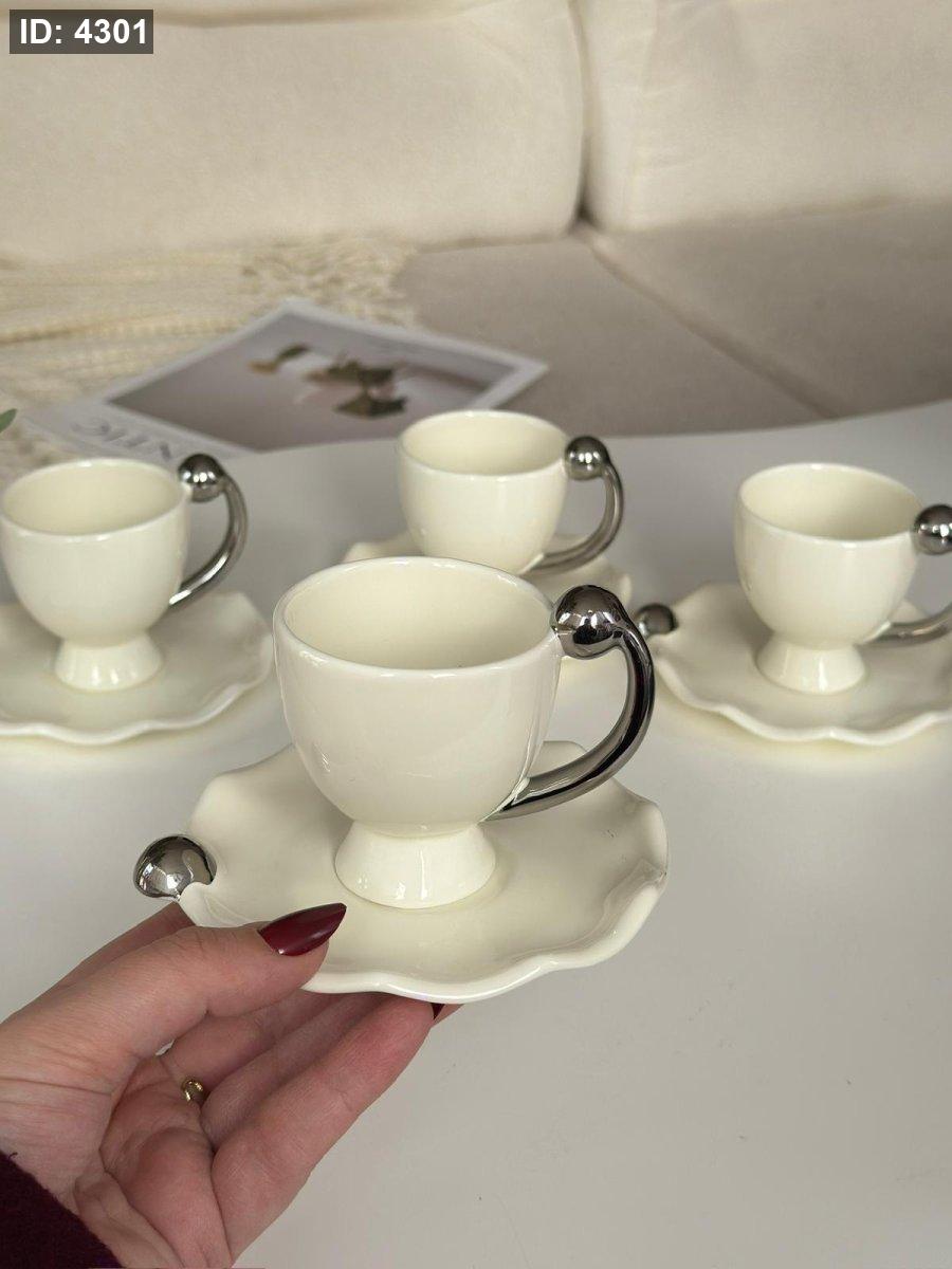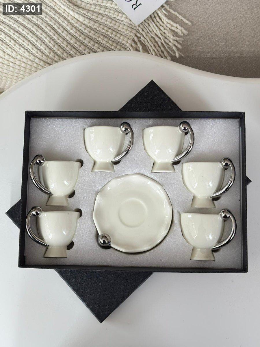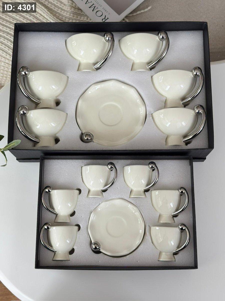 فناجين قهوه بورسلان يد ديكور فضي 6+6