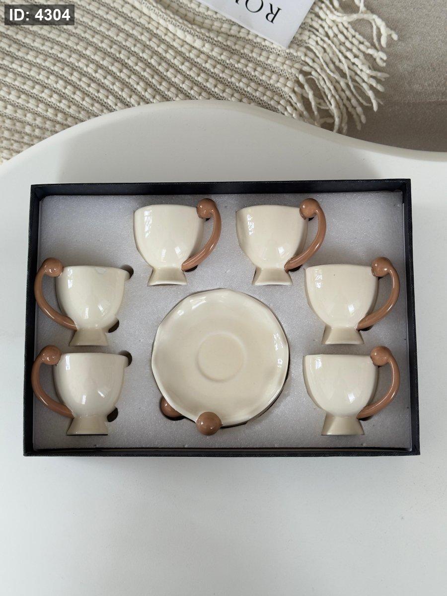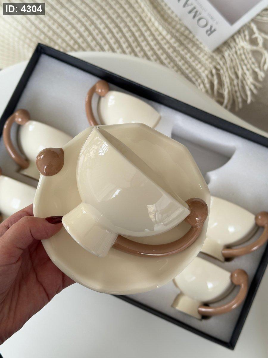 فناجين شاي بورسلان يد ديكور بني 6+6