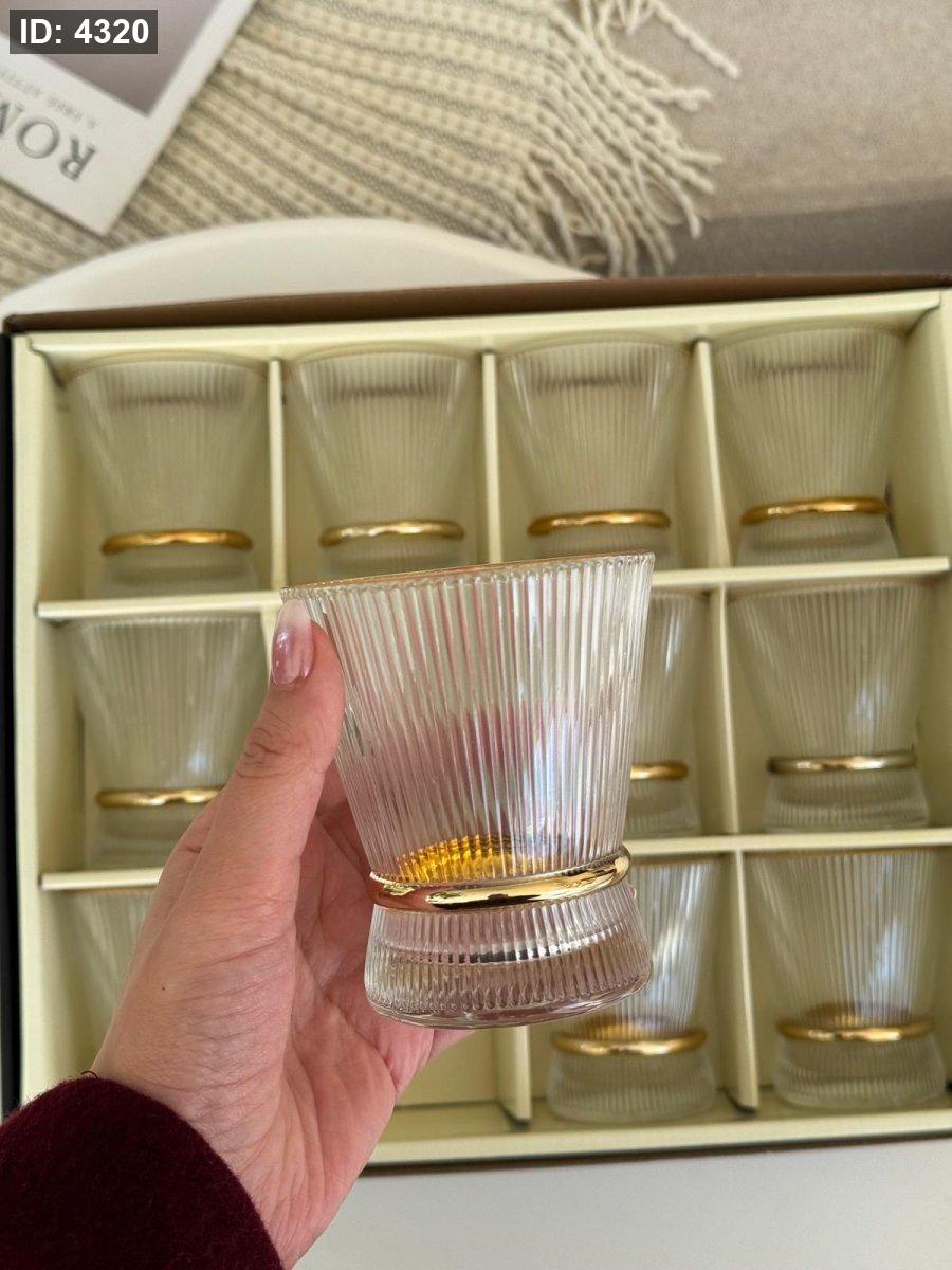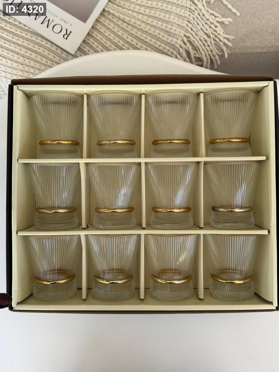 كاسات عصير / 12 محزز خصر ذهبي حز ذهبي