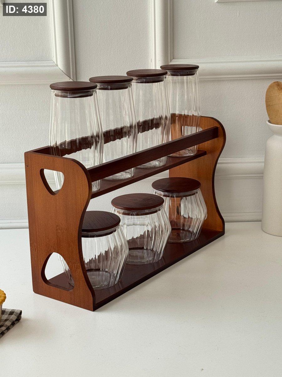 طقم سكريات 7 قطع + ستاند خشب (38*32*12سم)