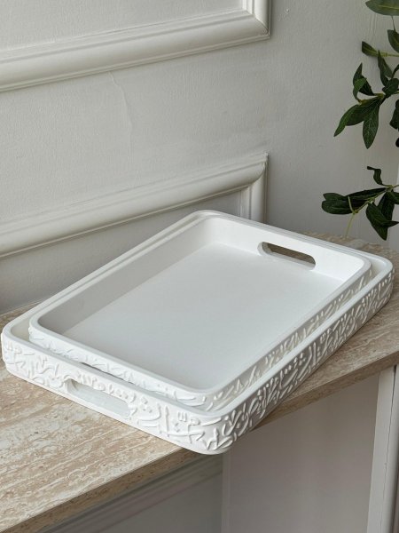 طقم صواني جبصين بالخط العربي مدور قطعتي (36+32سم)